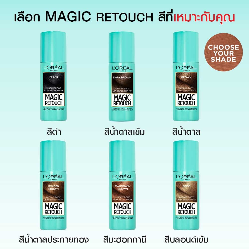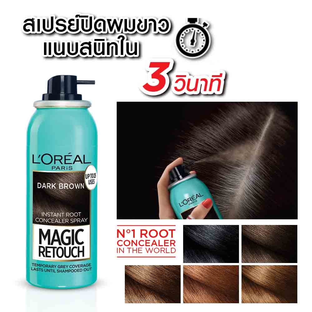 L'Oreal Paris Magic Retouch Instant Root Concealer Spray, concealing grey hair gives instant results after use Conceal hair, grey hair temporary grey covorage last until shampooed out. Helps to cover the grey hair within a few seconds. Change your hair color to look consistent,dry,fast,long lasting, no smudging. Free from ammonia peroxide.
