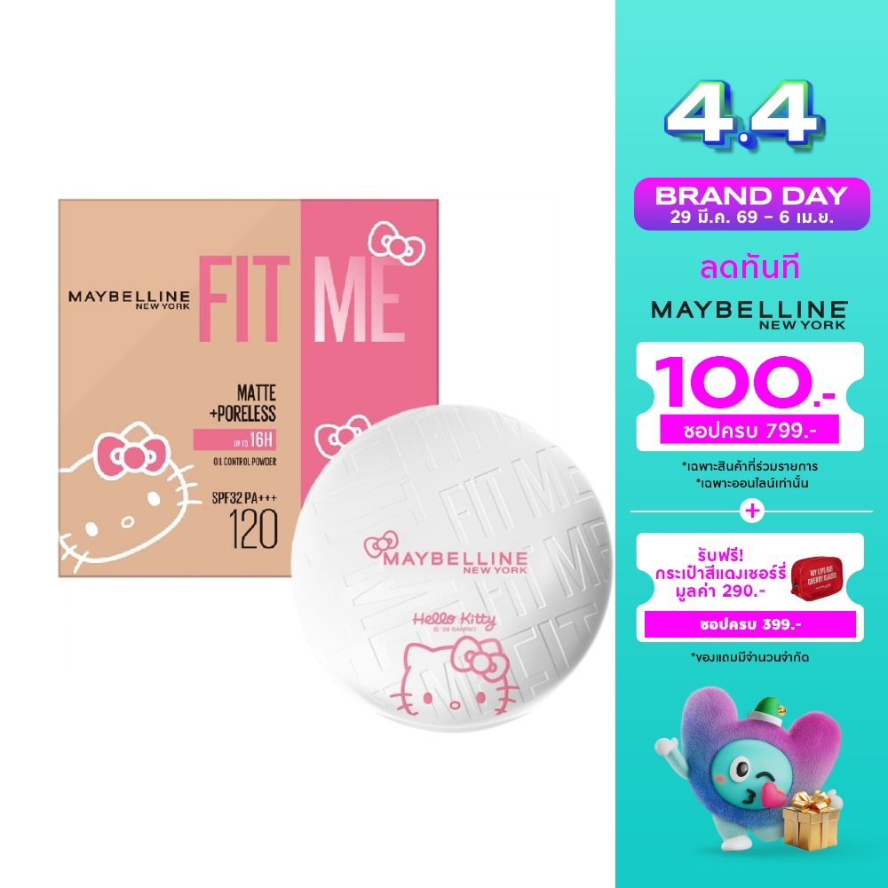 New Maybelline Fit Me Matte amp; Poreless Powder Hello Kitty Collection Limited Edition from Hello Kitty with NO.1 Best Selling Item from Maybelline, 16H Oil Control. The micro-powder has a soft, smooth texture that's easy to blend and fits the skin perfectly. It provides smooth coverage with a matte finish, giving the skin a naturally radiant look. Available in 5 familiar shades suitable for Thai skin tones and types, and protects skin from the sun with SPF32 PA+++. with organic uv filters for sun protectionwith a new formula that upgrades the texture to a non-cakey powder with a breathable light weight feel that fits and blends into your skin tone and texture seemlessly with 5 shades that fit with thai skin