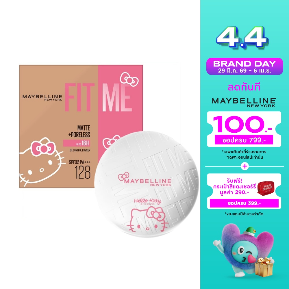 New Maybelline Fit Me Matte amp; Poreless Powder Hello Kitty Collection Limited Edition from Hello Kitty with NO.1 Best Selling Item from Maybelline, 16H Oil Control. The micro-powder has a soft, smooth texture that's easy to blend and fits the skin perfectly. It provides smooth coverage with a matte finish, giving the skin a naturally radiant look. Available in 5 familiar shades suitable for Thai skin tones and types, and protects skin from the sun with SPF32 PA+++. with organic uv filters for sun protectionwith a new formula that upgrades the texture to a non-cakey powder with a breathable light weight feel that fits and blends into your skin tone and texture seemlessly with 5 shades that fit with thai skin