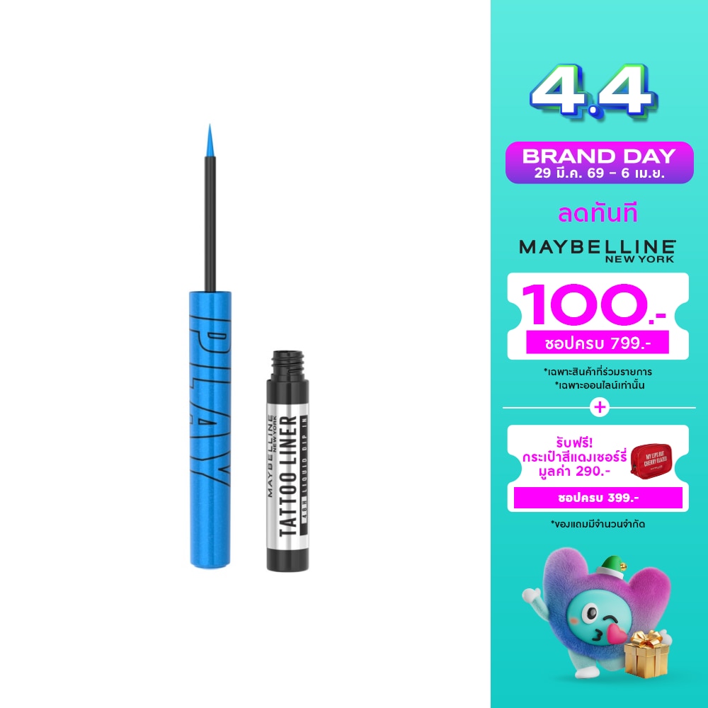 Meet no fear ink that withstands it all for up to 48 hours Maybelline New York s Tattoo Liner Play glides on bold and comes off easy. This dip in liquid liner is smudgeproof and waterproof. So, now you can play in high impact color for any fun, intense look you want no worries. Draw on and wipe off with warm water for a quick replay your way. Available in six playful shades you will love. Discover easy glide application so you can play, effortlessly Ophthalmologist tested and is suitable for contact lens wearers. Vegan formula no animal derived ingredients.