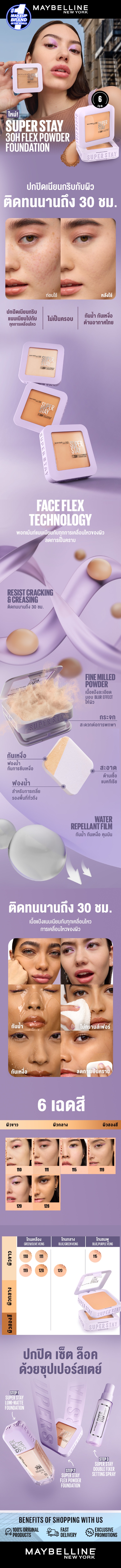NEW Super Flex Powder delivers up to 30H wear and full flexible and seamless coverage and ultra thin that looks and feels like skin Feels comfortable with skin With Skin Flex technology the powder will moves with skin to withstand 10K facial expression Water proof sweat proof and heat proof. The texture is as light as air, giving your skin a dimensional look. Your skin is beautiful and smooth in every dimension. Your skin is perfect in every light. No matter what the light is, it can handle it. It's waterproof, sweatproof, and smudge-proof, and helps protect you from the sun with SPF 16. - Locks in smooth skin, is long-lasting, and provides maximum coverage, giving you a matte finish that reflects light. - The texture is as light as air with Light-As-Air technology. - Your skin looks dimensional, lively, and ready for every light all day and night.