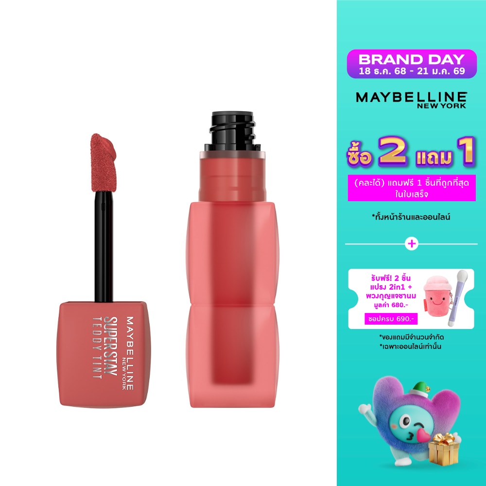 Maybelline Super Stay Teddy Tint 12H Longwear Soft Blurred Matte Lip Tint Transferproof 10 New Nude Shades Tint Lips In Teddy-Soft Matte Texture That Give A Natural Soft Look. 12-Hour Long Wear That Lasts With Plush Comfort. Formulate With Tinted Pigments For A Flush Of Matte Color. Teddy Technology For Tinted Pigment: Deliver 10-Hour Color With No Transfer. Teddy Soft Texture: Bouncy Polymers, Cushion Lips For Comfort. Blurring Powders That Give A Soft-Focus Look. Come With Puffed-Out Plush Pack And Teddy-Soft Applicator. Available In 20 Buildable Amp Belndable Shades.
