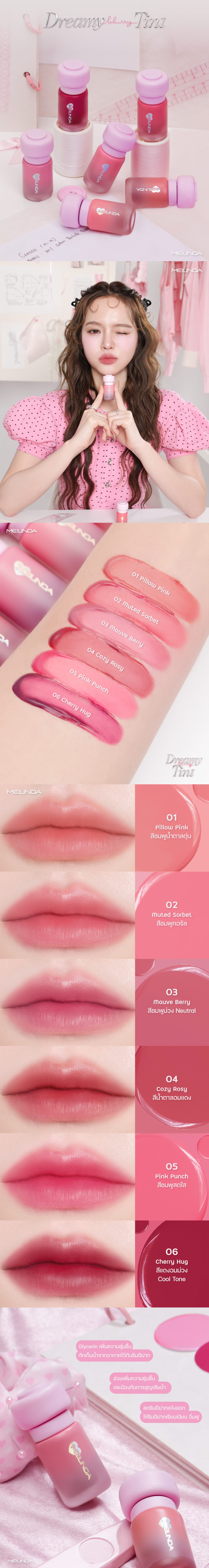 Meilinda Dreamy Blurry Tint Is A Soft Matte Lipstick With 6 Shades. Its Soft Touch Helps Blur Lip Lines Without Drying Or Settling Into The Lips. The Color Is Vivid And Moisturizes With Glycerin For All-Day Long-Lasting Wear. The Texture Is Smooth And Light As Air, Providing Intense Pigments And Vibrant Colors. It Is As Moisturizing As Applying Water To The Lips Without Causing Dryness Or Cracking. It Is Long-Lasting And Does Not Smudge After Application. Once The Lipstick Sets, It Comes With Vibrant Colors. The Matte Texture Does Not Dry Out The Lips, But Still Keeps The Lips Moisturized. It Does Not Leave Them Dry Like Typical Lip Tints. The Shades Are Suitable For All Ages And Skin Types. The Cute Packaging Is Available In Many Colors. It Is Portable And Easy To Carry Anywhere. Recommendations: After Use, Close The Cap Tightly And Store At Room Temperature.