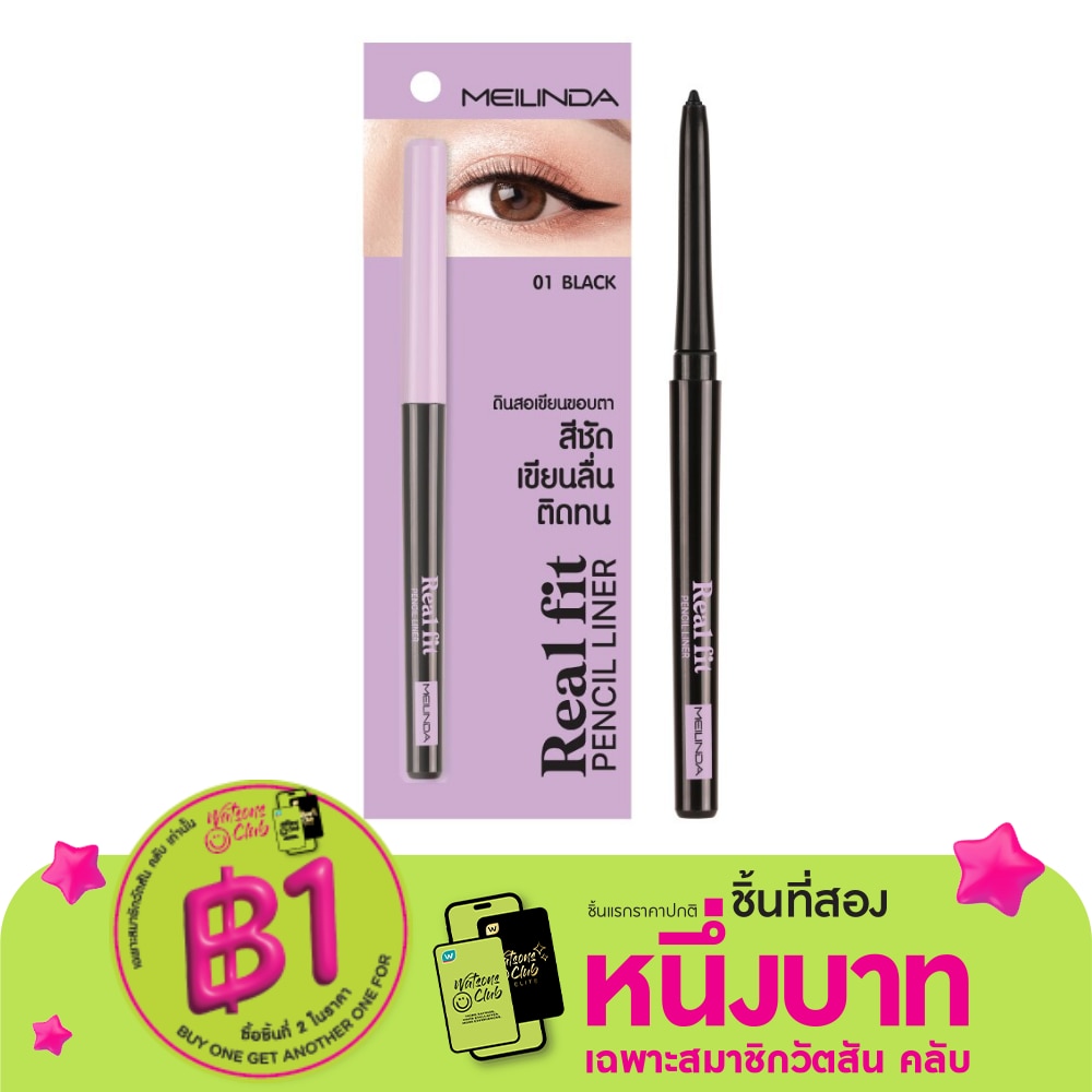 Meilinda Real Fit Pencil Liner 0.3g 01 Black Eyeliner pencil, soft texture, clear color, easy to write, make natural eye makeup becomes easy. Comes with waterproof and long-lasting properties, easy to cut, sharp lines, making the eyes look beautiful all day long, both black and brown in one stick. Soft gel texture. Easy to write without flaky or clumping intense pigment Looks smooth, eye-catching, not easy to smudge, waterproof, can last all day. Using only one handle can be beautiful. There are 2 colors for you to choose from. According to your makeup needs, it can be easily applied. And precisely every time, this waterproof eye pencil won't slip. Or smudge, whether you're looking for a smudge-proof eyeliner. waterproof eyeliner Perfect black or brown eyeliner. This product is the answer to this easy-to-use eyeliner. It is a must for beginners to complete eye makeup.