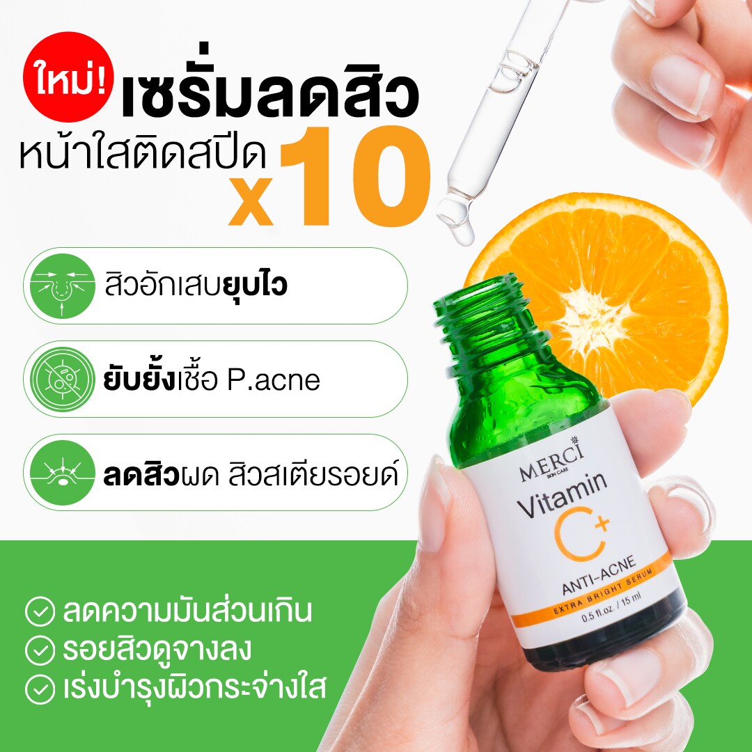 Merci Vitamin C+ Anti-Acne Extra Bright Serum 15 Ml. เซรั่ม วิตามินซี สิว