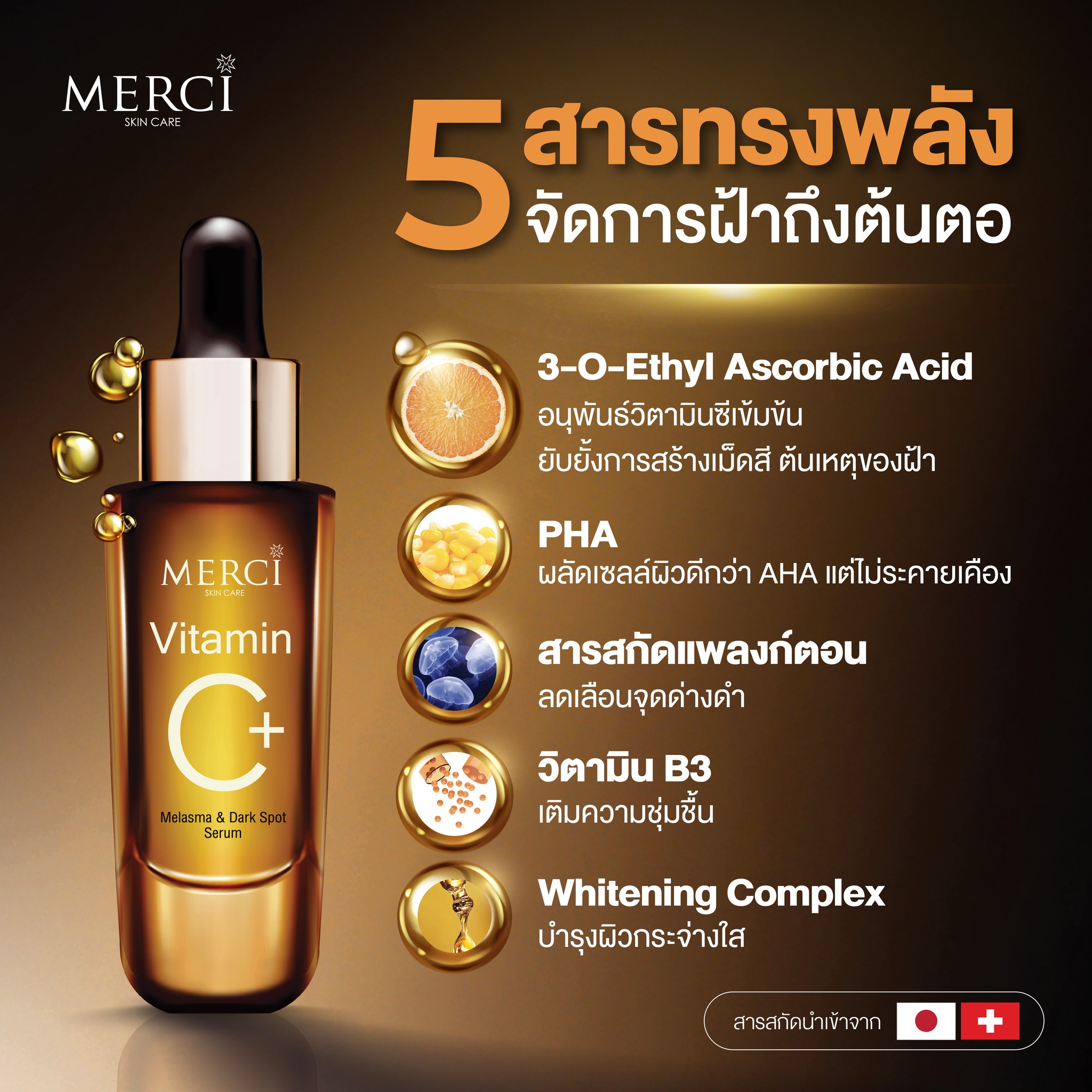 Merci Vitamin C+ Melasma Dark Spot Serum 15 G. เซรั่ม ลดฝ้า กระ จุดด่างดำ