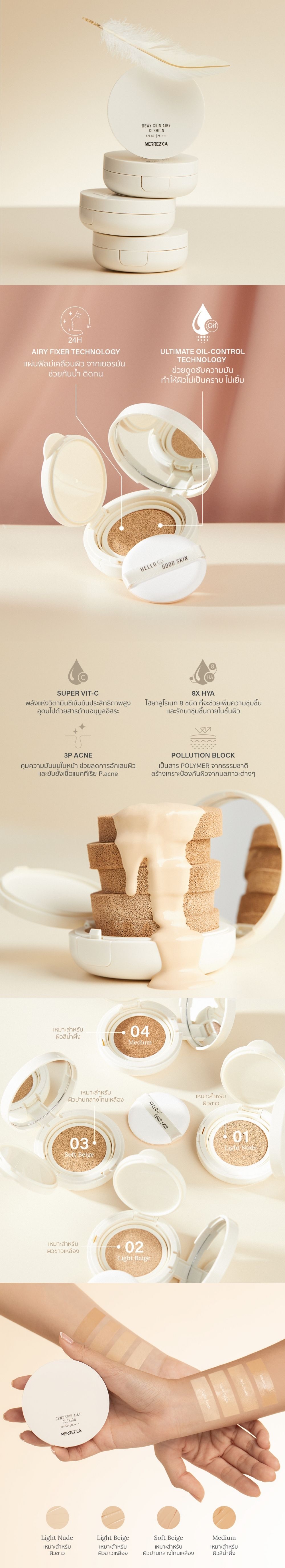 Glass cushion Merrezca Moisture within the skin layer pulling water from the inside of the skin to the outer layer of the skin. Moisturizes the skin regularly. It can retain the skin layer. It creates a film on the skin layer to retain moisture. Helps keep moisture on the skin for a long time. Light and comfortable texture Not heavy on the face, easy to spread. Durable AIRY FIXER TECHNOLOGY reveals beautiful skin as soon as you use it naturally, ready to control it making your face not greasy