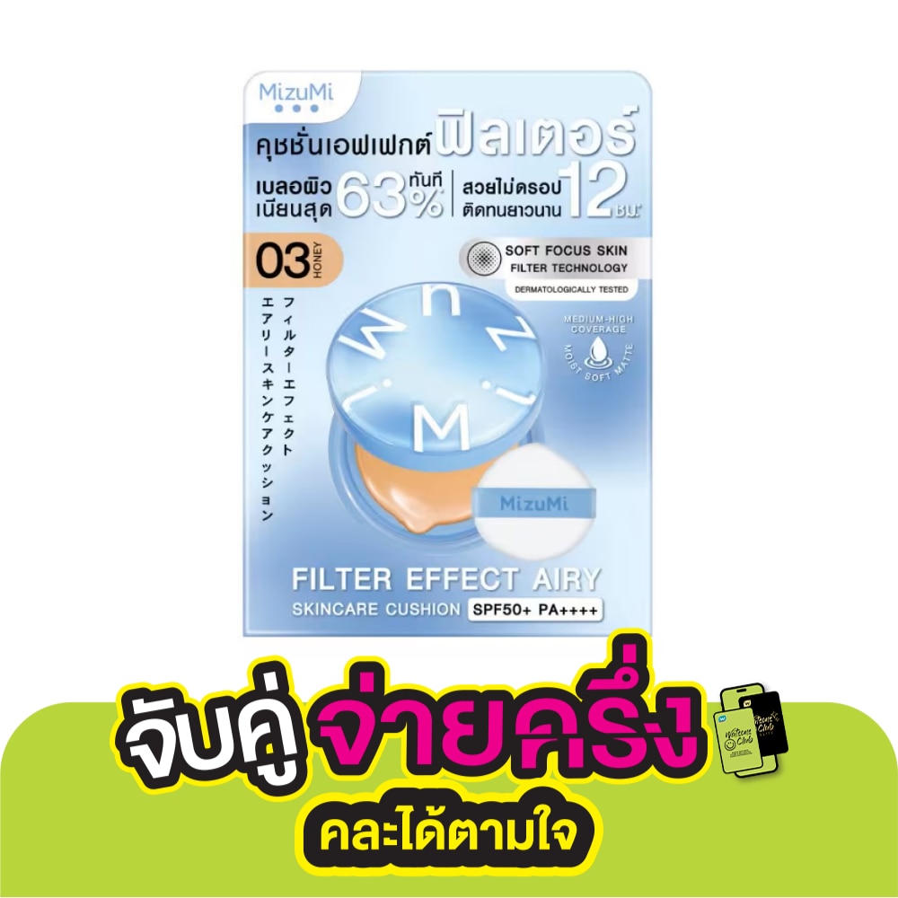 MizuMi Filter Effect Airy Skincare Cushion SPF50+ PA++++ Light is reflected and diffused for a natural looking, multi-dimensional, soft-blurred matte finish. It helps protect skin with broad spectrum SPF to defend against both UVA/UVB. cushion with 80 skincare ingredients amp; SPF. Cover imperfections, pores and bumps. Even out skin tecture. Instantly reduce shine and excess sebum with Moist Soft Matte finish. Promote long wear and 12 hours.Suitable for acne prone skin. Formulated 5 free from Silicone Free , Paraben Free Oil , Free Alcohol Free , Fragrance Free.Dermatologically Tested