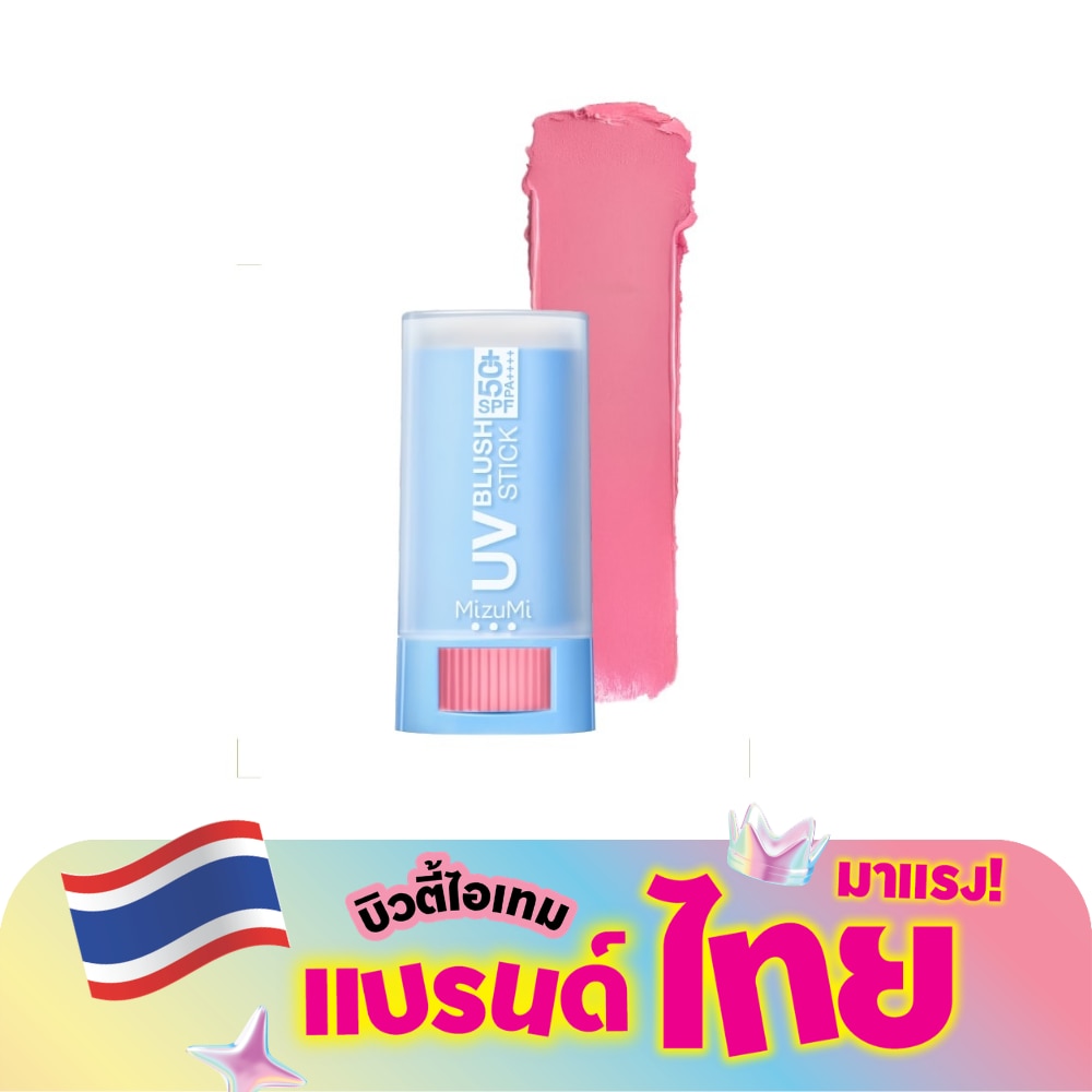 MizuMi UV Blush Stick SPF50+ PA++++ Net weight 4grams. A sun protection blush stick with a smooth easy to blend texture that never feels sticky. It gives your cheeks a dewy glowing finish while providing deep hydration with hyaluronic moisture. It delivers vivid long lasting color and is enriched with four natural oils to keep your cheeks soft radiant and healthy looking.It protects the skin from UV rays helps brighten the complexion naturally prevents dryness and reinforces the skins barrier against free radicals.