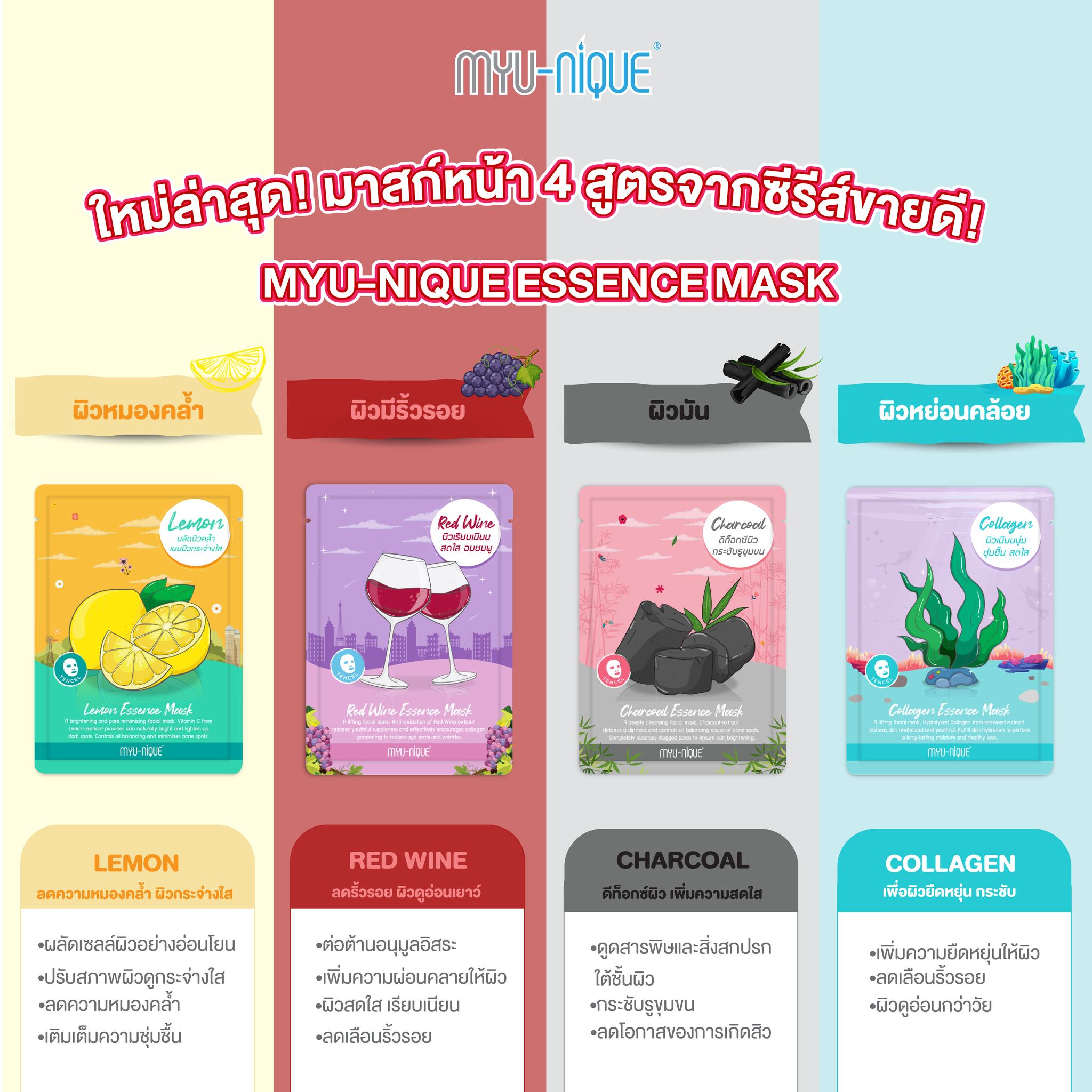 Myu-Nique Charcoal Essence Mask Facial mask sheet with great quality result essence is formulated with Charcoal extract which have Carbon as main substance. Charcoal helps to absorb residue on skin, clean pore, skin detox and pore minimizer. Green tea water extract helps to rejuvenate and gives skin moisture. Also have Witch hazel water extract, which helps to minimize pore size, smooth skin texture and reduce oil release. This facial mask gives you pore minimizer, oil control and smooth skin. For fresh and look pleasant to touch skin.