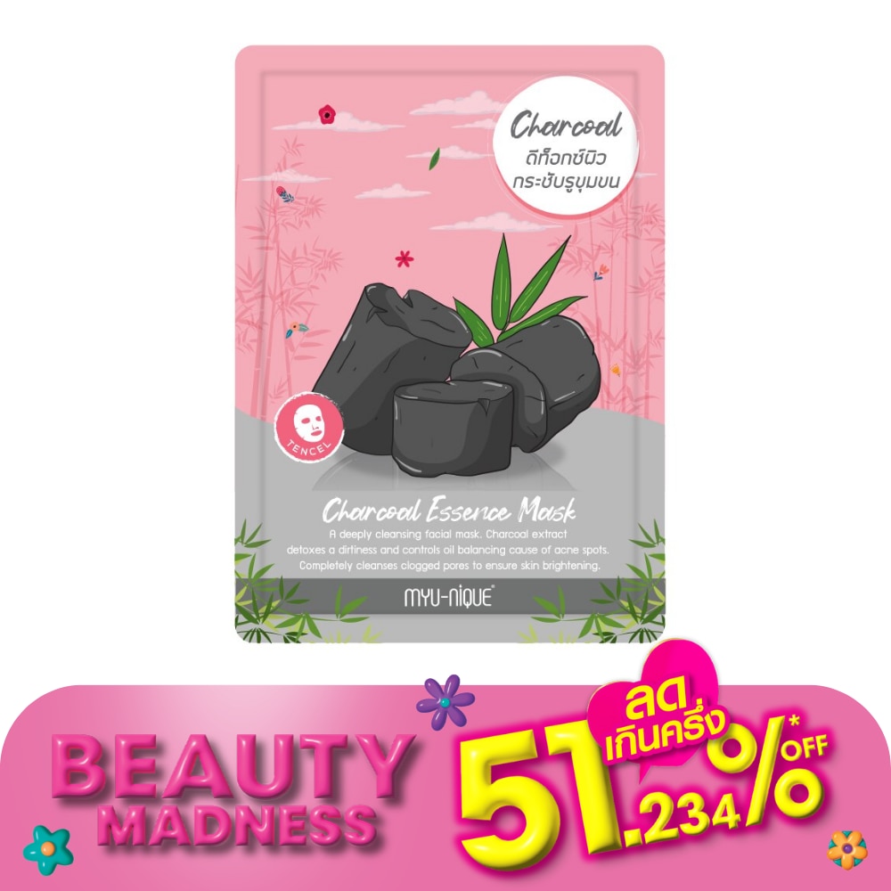 Myu-Nique Charcoal Essence Mask 1'S มาสก์หน้า ดีท็อกซ์ผิว กระชับรูขุมขน