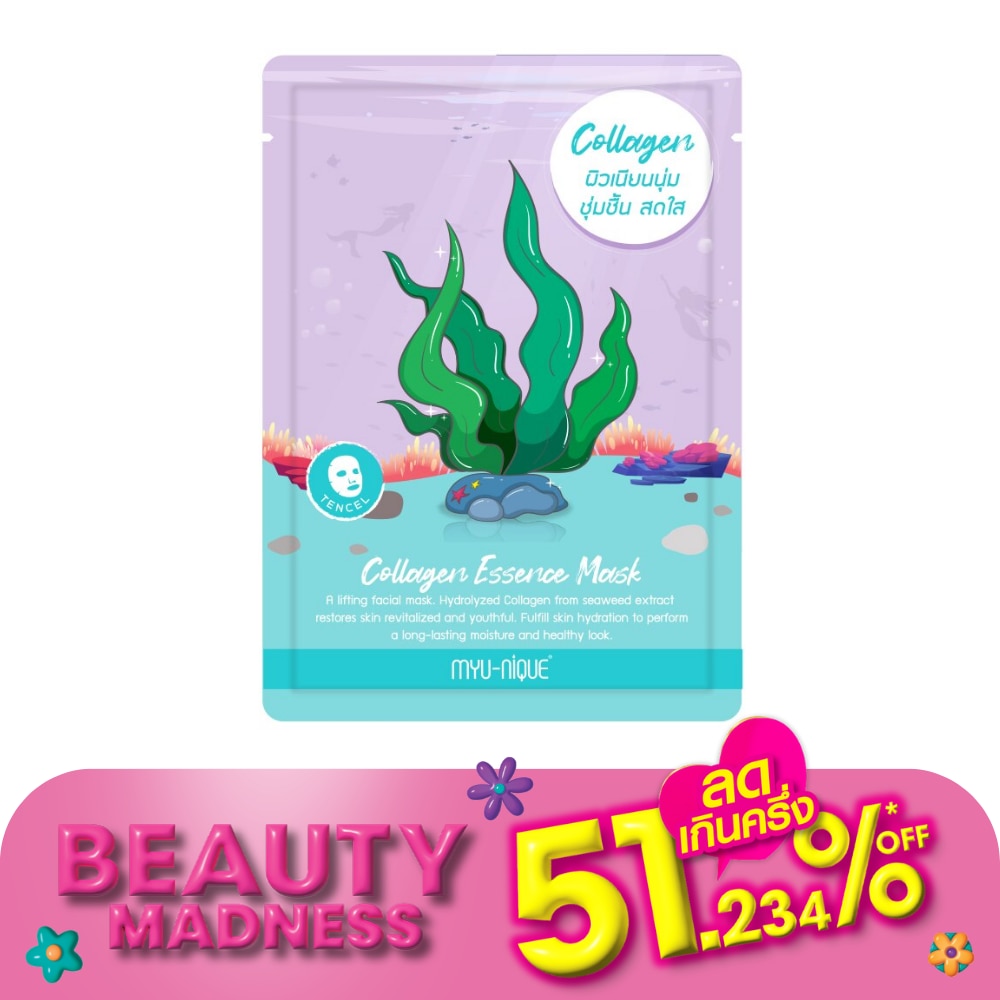 Myu-Nique Collagen Essence Mask 1'S มาสก์หน้า ผิวเนียนนุ่ม ชุ่มชื้น สดใส