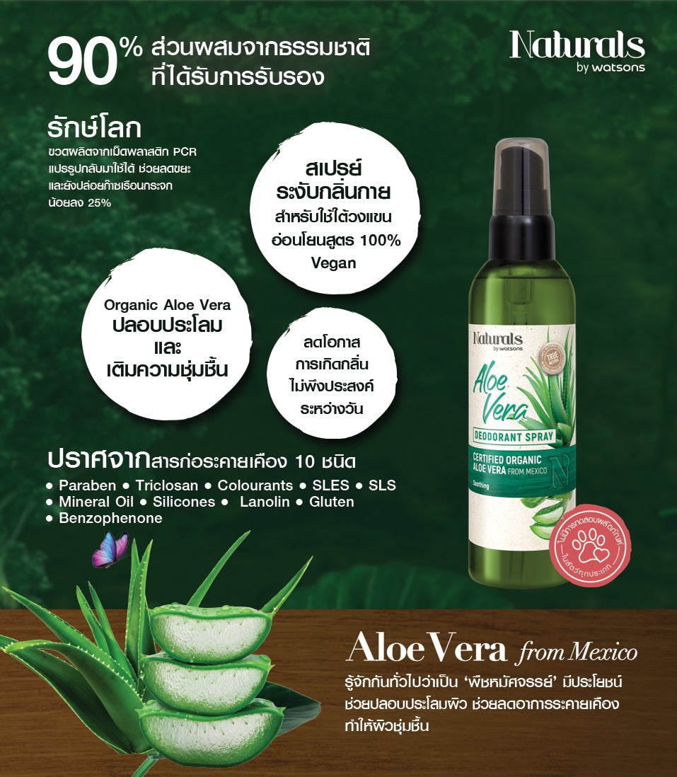 Naturals By Watsons True Natural Aloe Vera Deodorant Spray 120ml