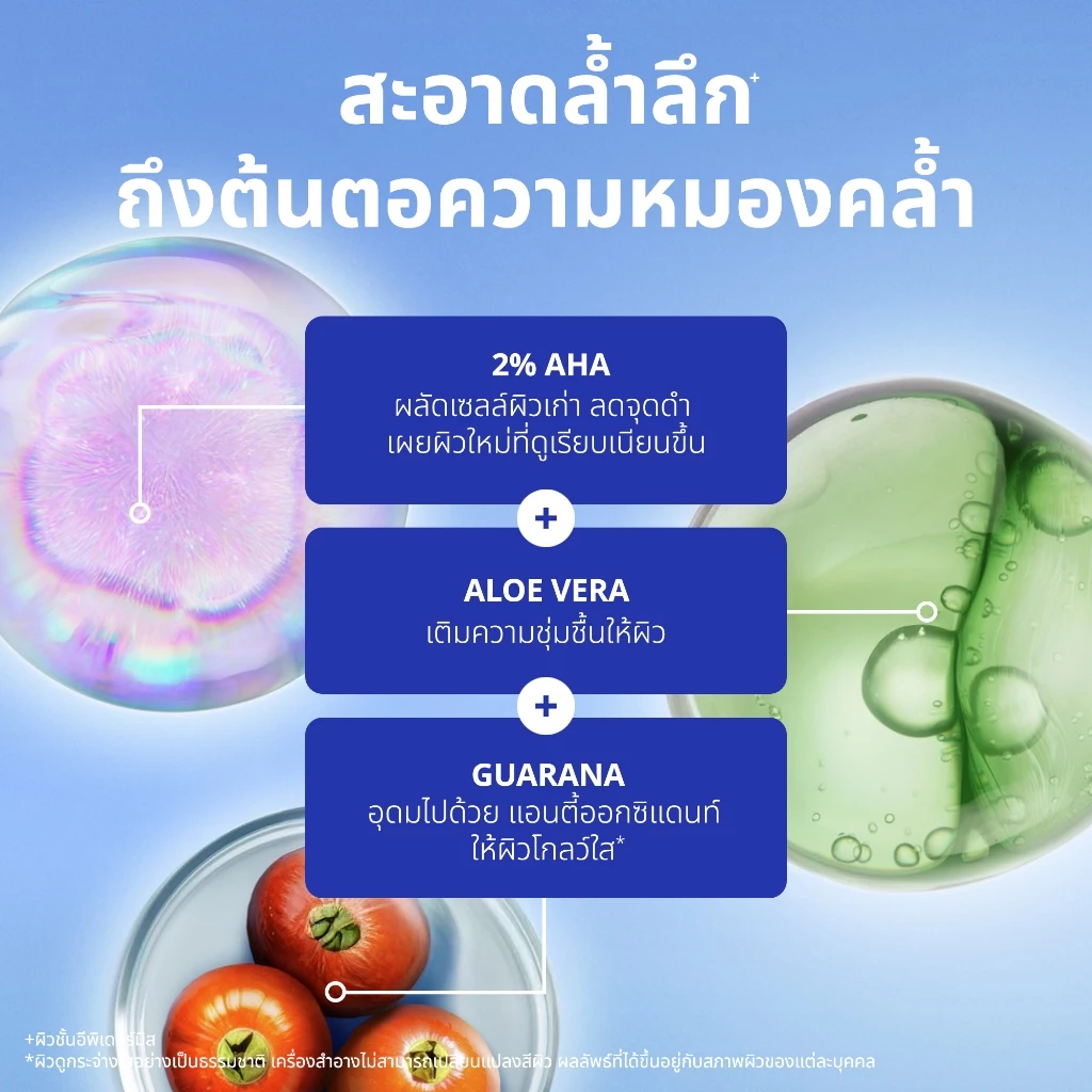Ingredients/ส่วนประกอบ: Aqua, Alcohol Denat., Sodium Cocoamphoacetate, Glycerin, Coco-Betaine, Lactic Acid, Sodium Chloride, Dehydroxanthan Gum, Glycolic Acid, Aloe Barbadensis Leaf Juice Powder, Paullinia Cupana Seed Extract, Caffeine, Maltodextrin, Glyceryl Glucoside, Sodium Hydroxide, Sodium Benzoate