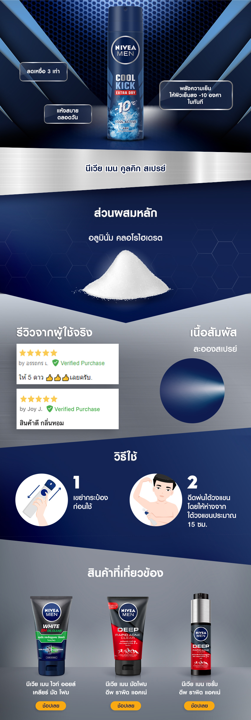 Nivea Men Deo Cool Kick Spray 150 Ml. ผู้ชาย สเปรย์ ลดเหงื่อ ระงับกลิ่นกาย