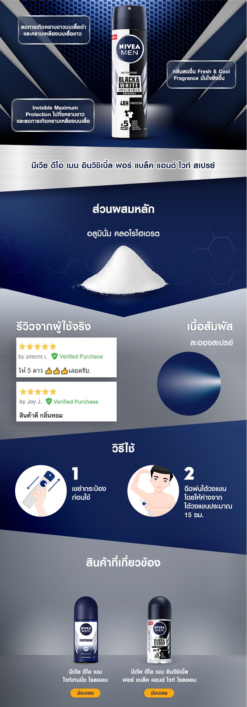 NIVEA DEO FOR MEN BLACK & WHITE SPRAY- 48h effective anti-perspirant protection- Anti- yellow staining for white clothes, keeping them white for longer- White mark protection for black clothes - Skin tolerance dermatologically approved- No alcohol