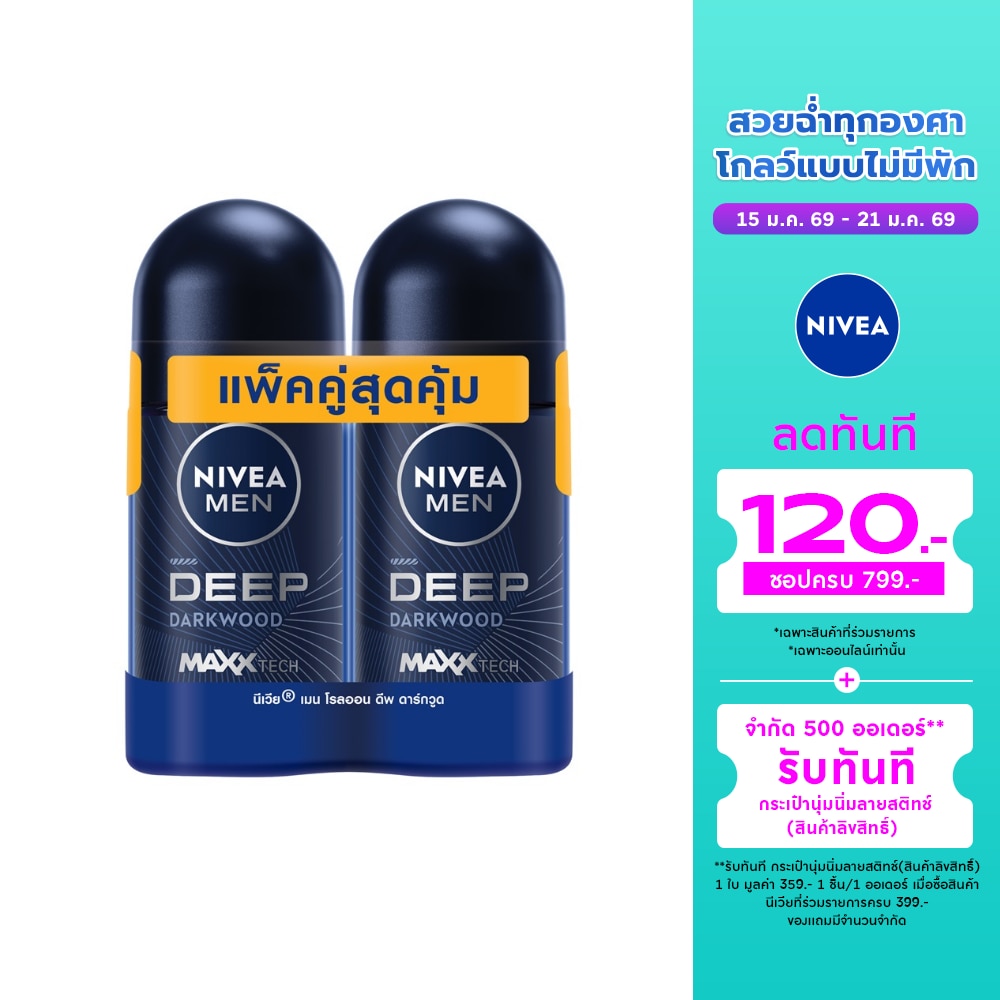 Nivea Men Roll On Deep Darkwood 50 Ml.Twin Pack ผู้ชาย โรลออนลดเหงื่อ ระงับกลิ่นกาย