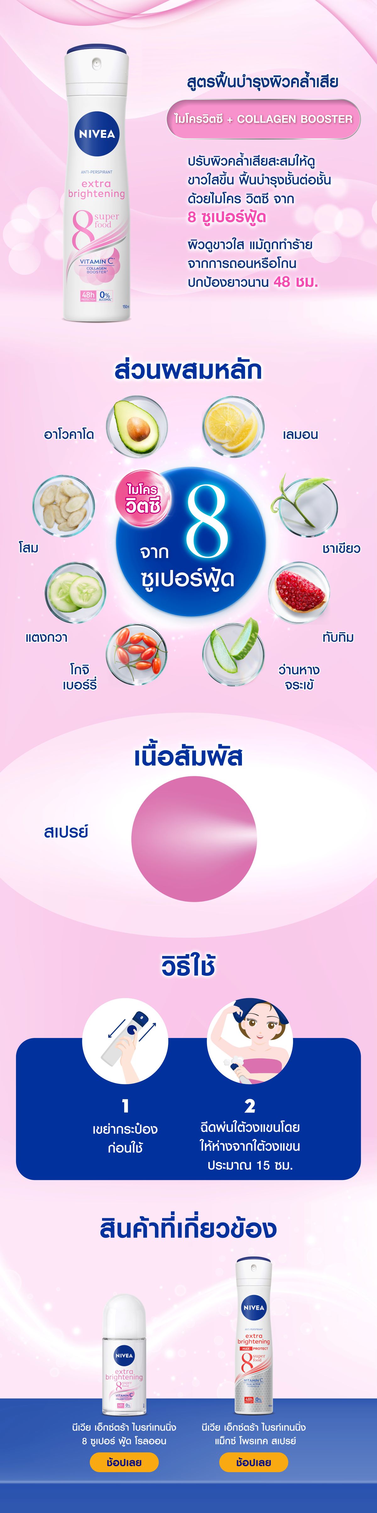 Nivea Spray Extra Bright Radiant Smooth 150 Ml. สเปรย์ ลดเหงื่อ ระงับกลิ่นกาย