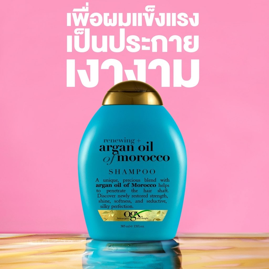 OGX Renewing + Argan Oil of Morocco Shampoo. A unique, precious blend with argan oil of Morocco. Discover newly restored strength, shine, softness and seductive, silky perfection.