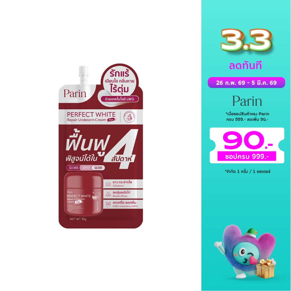 Introducing Parin Perfect White Repair Underarm Cream Plus your solution for smooth and radiant underarm skin Say goodbye to chicken skin with Parin Perfect White Repair Underarm Cream Plus This cream helps to brighten the skin and reduce the appearance of chicken skin restoring darkened skin and providing moisture without feeling greasy It gently rejuvenates the skin suitable for all skin types Key extracts that nourish the skin include Niacinamide 3 percent Moisturizes the skin under the arms Tranexamic Acid 3 percent Brightens the skin under the arms and reduces dark spots Skinperf LWG 2 percent Gently exfoliates the skin and provides long lasting effects Pomegranate Extract 1 percent Antioxidant properties help the skin appear fresh and bright Excutin 4 MSK 1 percent Reduces dark spots and restores skin brightness Nab Butterbur Extract 1 percent Soothes inflammation and irritation nourishing and strengthening the skin This cream has been tested by dermatologists ensuring its gentleness and effectiveness It's suitable for pregnant and postpartum mothers providing confidence in its mildness and non irritating formula