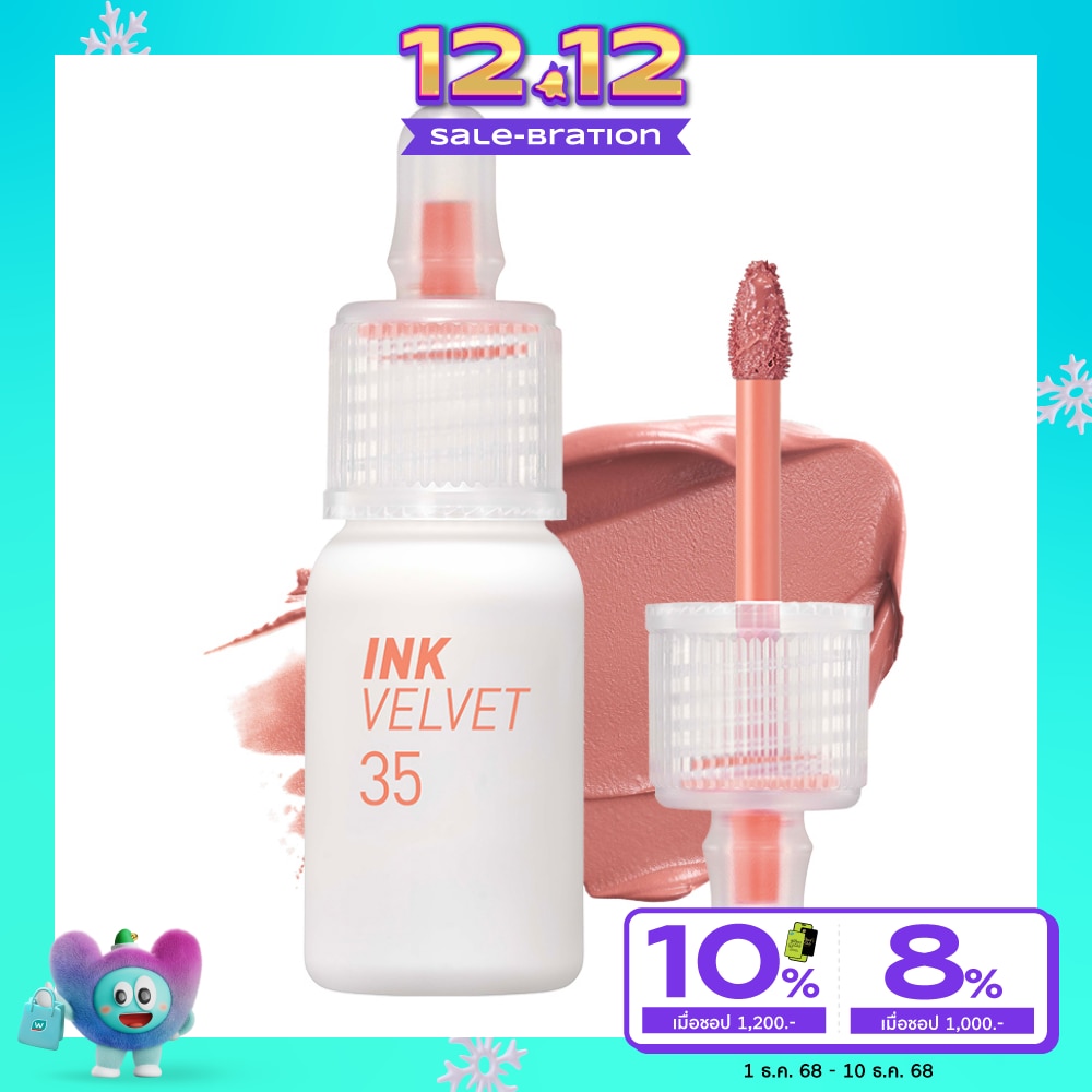 Peripera Ink Velvet Lip velvet lip tint The texture is halfway between matte and cream. There is a sharp contrast of colors, dense, longlasting pigments, completely covering up the colors of souvenirs. The texture is similar to whipped cream. Fill in the grooves of the lips to make them full. Can be applied in a diffused way. To get a light look Suitable for a casual day. Or fill the lips to get a completely beautiful look, it's the answer. Importantly, it can also be applied in gradient colors to achieve an ombre look. Just apply a light tone all over your lips and blend it gently. Continue with a darker tone around the inside of the mouth. Then spread it out You will get a more beautiful and gentle look like a real Korean girl. It is considered a model that is recommended to have many colors to make makeup no longer boring.