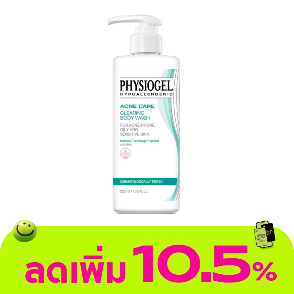Physiogel Acne Care Clearing Body Wash. The PHYSIOGEL body wash is carefully crafted to address the needs of those struggling with body acne. It maintains the natural balance of the skin without causing harm, resulting in a clean, less oily appearance with reduced blemishes. It's enriched with moisturizing ingredients, including Bio-Mimic Technology, to cleanse and maintain the skin's natural balance. It strengthens the skin's natural barrier, helping it recover and enhance enzyme function. This promotes more resilient and healthier skin, reducing dryness caused by cleansing. The formula includes gentle and safe ingredients suitable for daily use, effectively tackling acne in various areas, even on sensitive and easily irritated skin. PHYSIOGEL ACNE CARE CLEARING BODY WASH combines the power of Bio-Mimic Technology with Salicylic Acid, which penetrates deep into the skin to combat blackheads, reduce excess oil, and prevent the accumulation of acne-causing P. Acne bacteria, leading to fewer breakouts. It's also enriched with Palmitamide MEA to ease inflammation, Niacinamide (Vitamin B3) to regulate oil production, soothe inflammation, and reduce redness, as well as Glycerin, Panthenol, and Ceramide NP to maintain skin's moisture barrier.