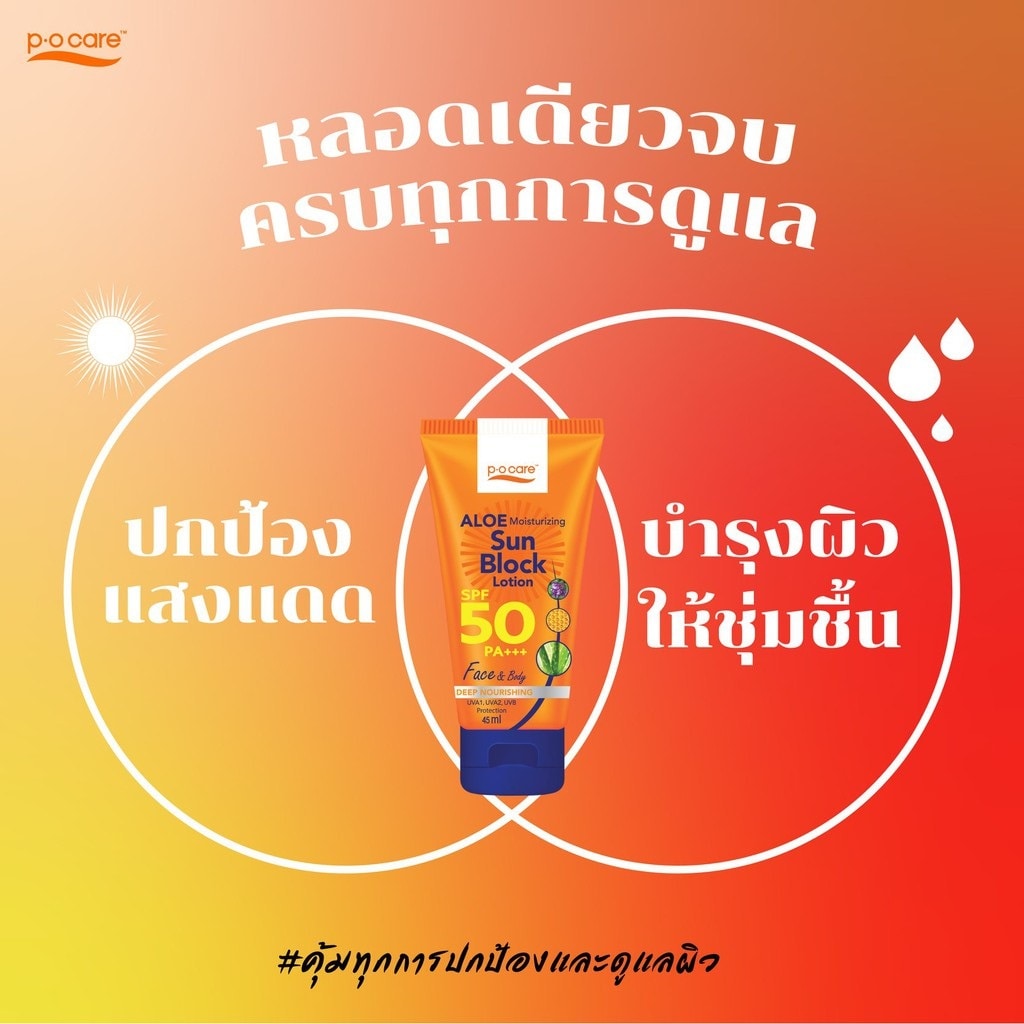 PO Care Aloe Moisturizing Sun Block Lotion SPF50+ PA++++ Face Body 45 Ml.