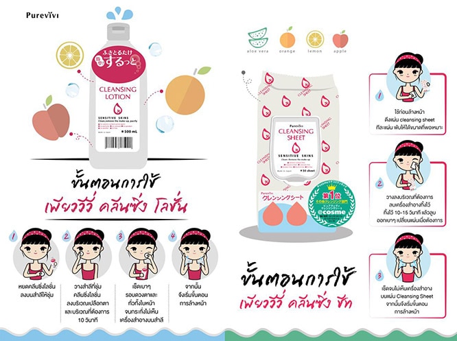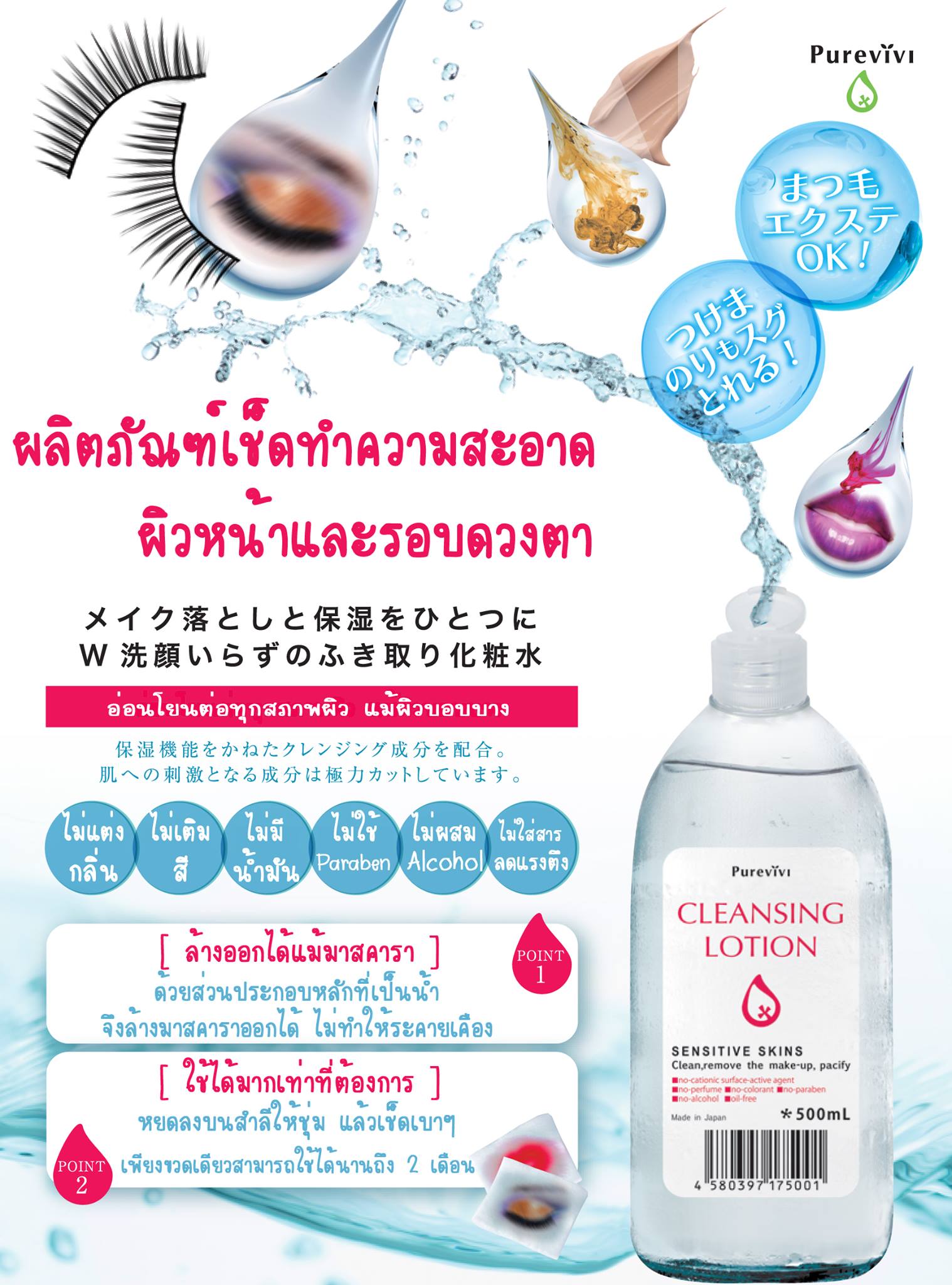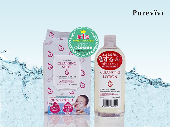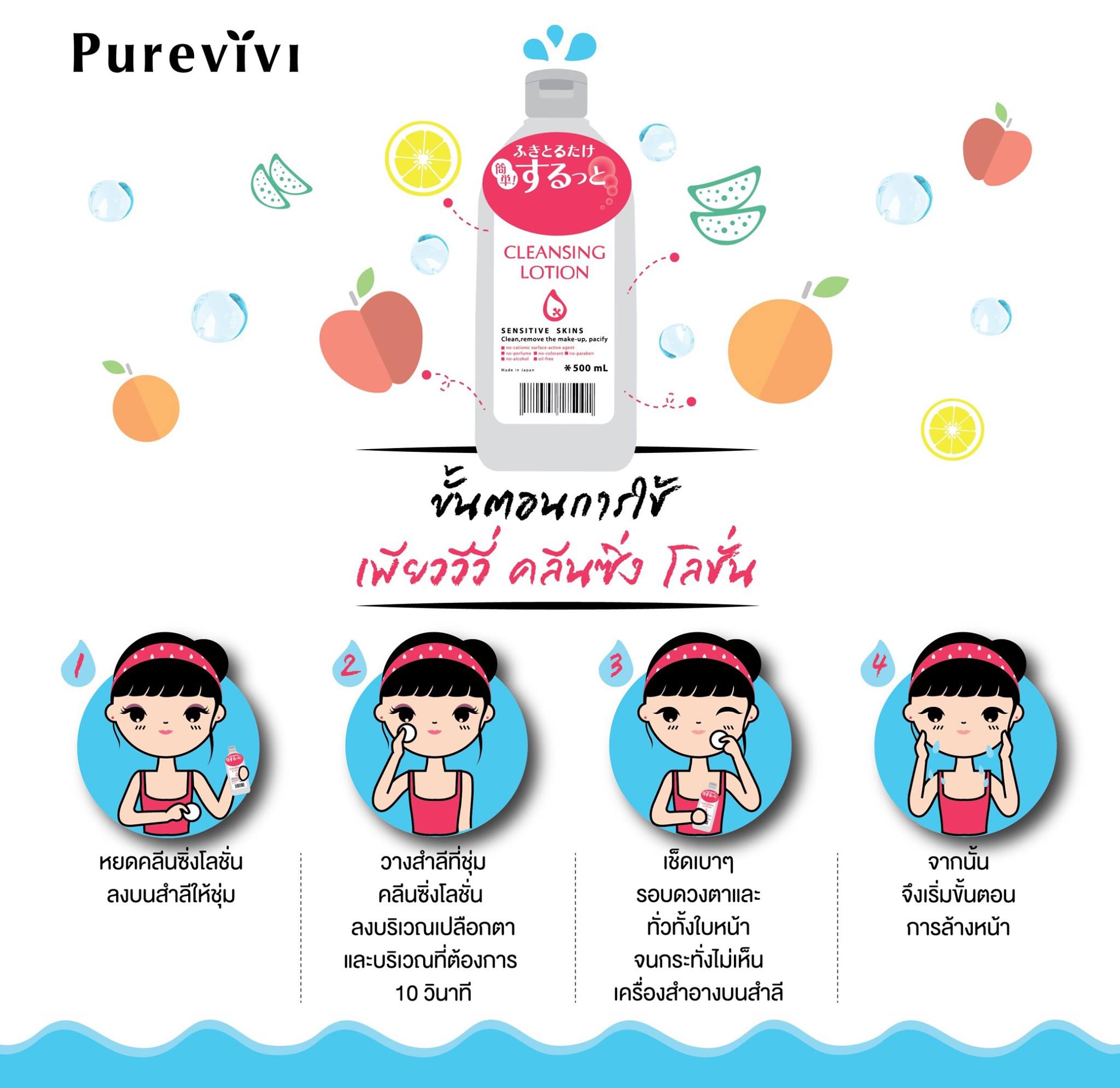 Purevivi Cleansing Lotion, popular makeup remover from Japan. Because of 80% is water, oil-free, alcohol-free, color-free, fragrance-free, cation-free and paraben-free, Purevivi cleansing lotion is suitable for all types of skin even the most sensitive. It contains 9 moisturising natural fruit and plant extracts such as Grapefruits Extract, Lemon Extract, Jujube Extract, Apple Extract, Orange Extract, Lime Extract, Coix Seed Extract, Crataegus Cuneata Fruit Extract and of course Aloe Extract also Hyaluron. It is capable of cleansing and dissolving all kinds of makeup including waterproof ones, leaving your skin feeling soothed and moisturised.
