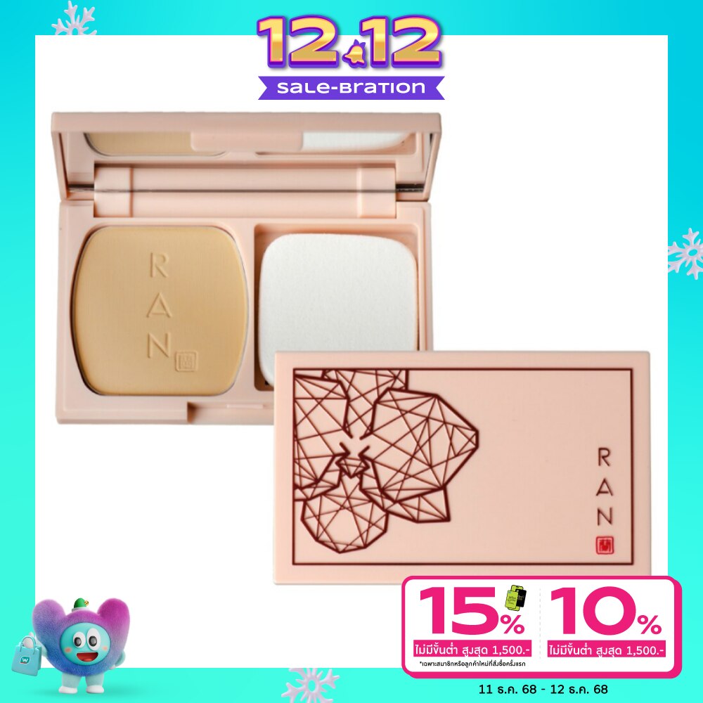 Use the sponge and apply the powder evenly to the face and neck.