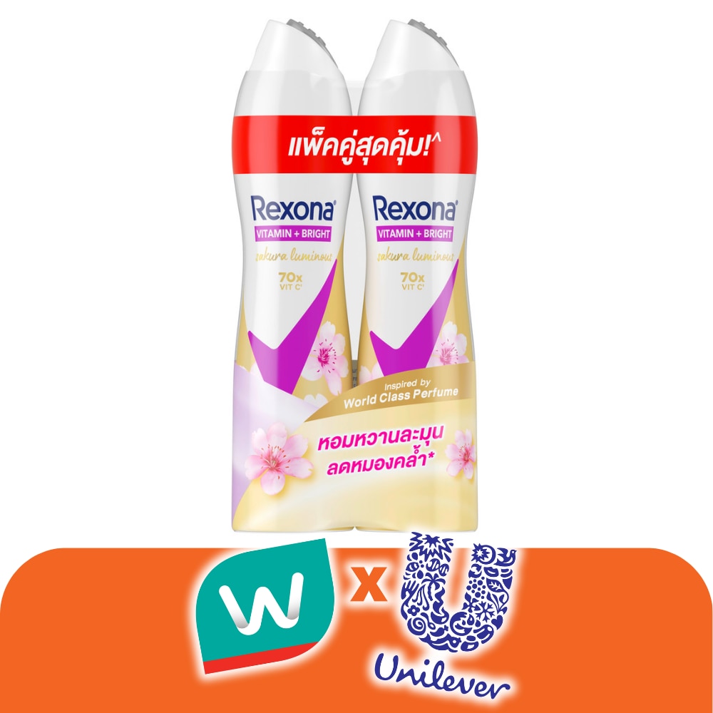 Rexona Spray Vitamin + Bright Sakura Radiance Antiperspirant 135 Ml. Twin Pack สเปรย์