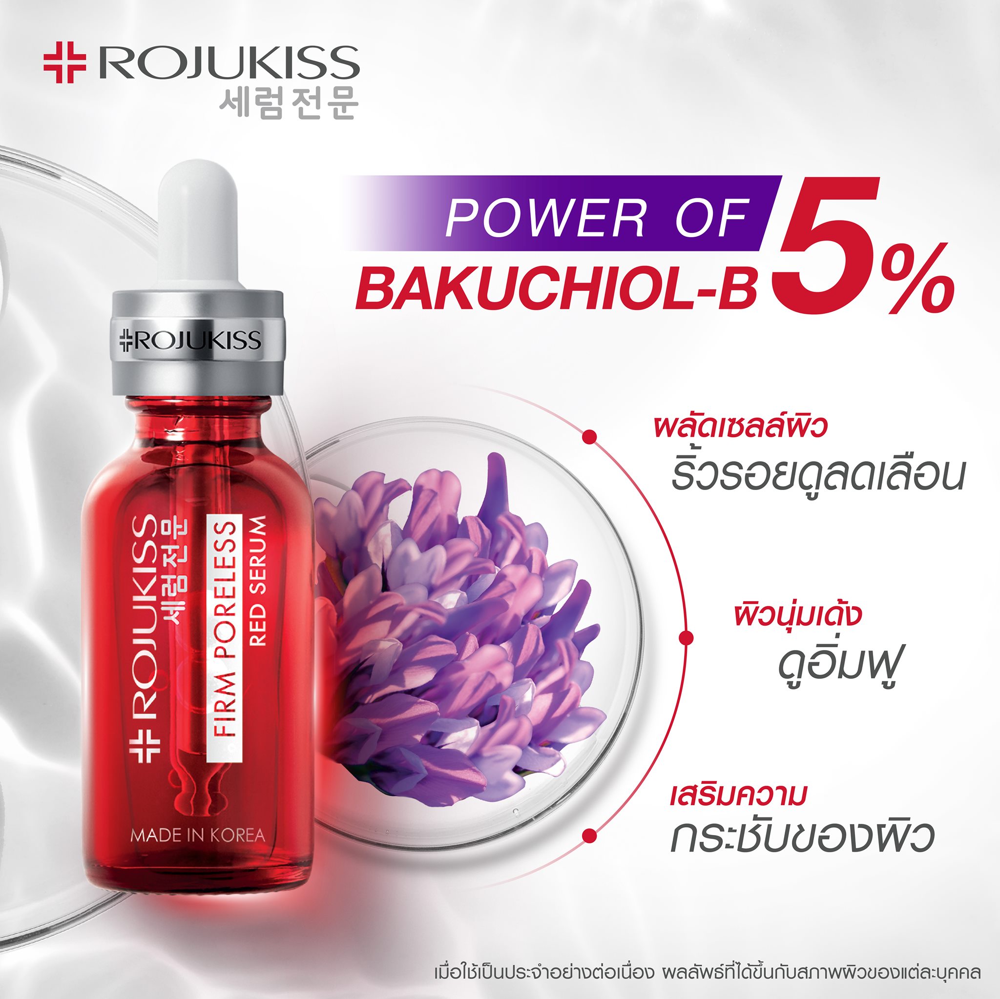 Rojukiss Firm Poreless Red Serum Helps restore skin from aging problems As effective as retinol, but gentler. Helps reduce the appearance of aging wrinkles such as dullness and dark spots. Helps tighten pores. Return the firmware to the face. Including helping to adjust the skin to look consistent With less chance of irritation After cleansing the face, apply a few drops of serum on your fingertips. Then spread over the face and neck. Before maintenance with moisturizer Avoid the eye area. Helps restore skin from aging problems As effective as retinol, but gentler. Helps reduce the appearance of aging wrinkles such as dullness and dark spots. Helps tighten pores. Return the firmware to the face. Including helping to adjust the skin to look consistent With less chance of irritation. After cleansing the face, apply a few drops of serum on your fingertips. Then spread over the face and neck. Before maintenance with moisturizer Avoid the eye area.