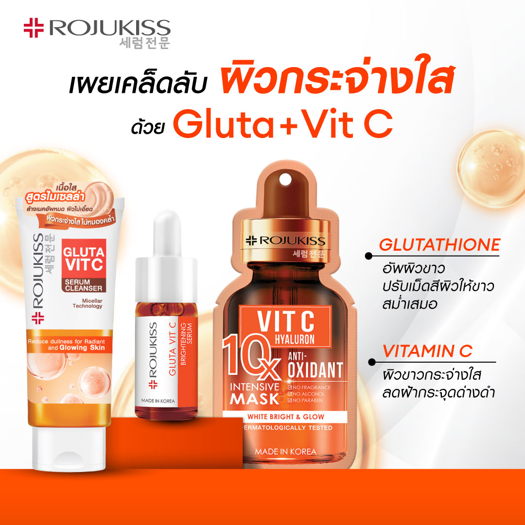 Rojukiss Collagen 10X Intensive Mask Facial treatment mask with 10X Collagen serum For stubborn wrinkles, fine lines and skin sagging problems. Its deeply nourishes and effective address skin aging problems resulting in firmer, boucier skin and smoother from the first usage. The serum mask is enriched with 30X Collagen, Peptides and Vitamins. COLLAGEN Improve skin elasticity and give your skin a more youthful appearance and feel. PEPTIDES Reduce the appearance of the fine line and wrinkles while strengthening the skins barrier. VITAMINS Improvement in overall skin texture and appearance. NO PARABEN / ALCOHOL / FRAGRANCE / COLORANT