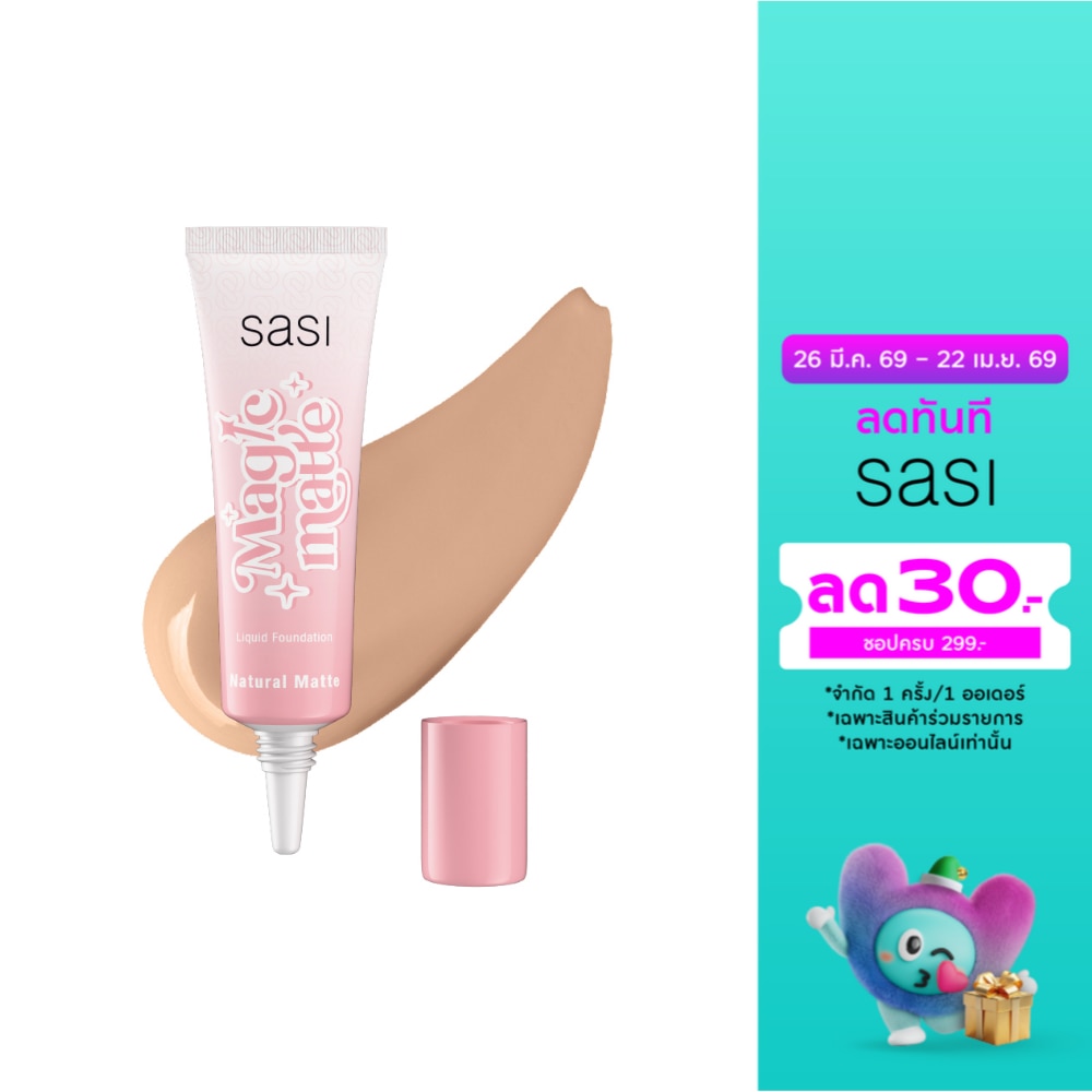 Sasi Magic Matte Liquid Foundation A foundation that creates a smooth matte skin finish.Oil control for 24 hours Color stays true all day Lightweight and seamless coverage A naturally matte foundation with medium to high coverage. Lightweight texture easy to blend noncakey and delivers a flawless finish that lasts all day.Protects skin from sun exposure with SPF35 PA+++. Oil control for 24 hours with Silicamatte Technology from Japan which absorbs oil up to 9 times reducing cakiness.Features Stay Matte All Day film technology that helps foundation adhere to skin comfortably without cracking or dryness. Waterproof sweatresistant and color stays true throughout the day. Infused with HYA 8D to replenish and lock in moisture for a healthy glow and Cica with antioxidant properties to soothe skin from pollution and sun exposure.