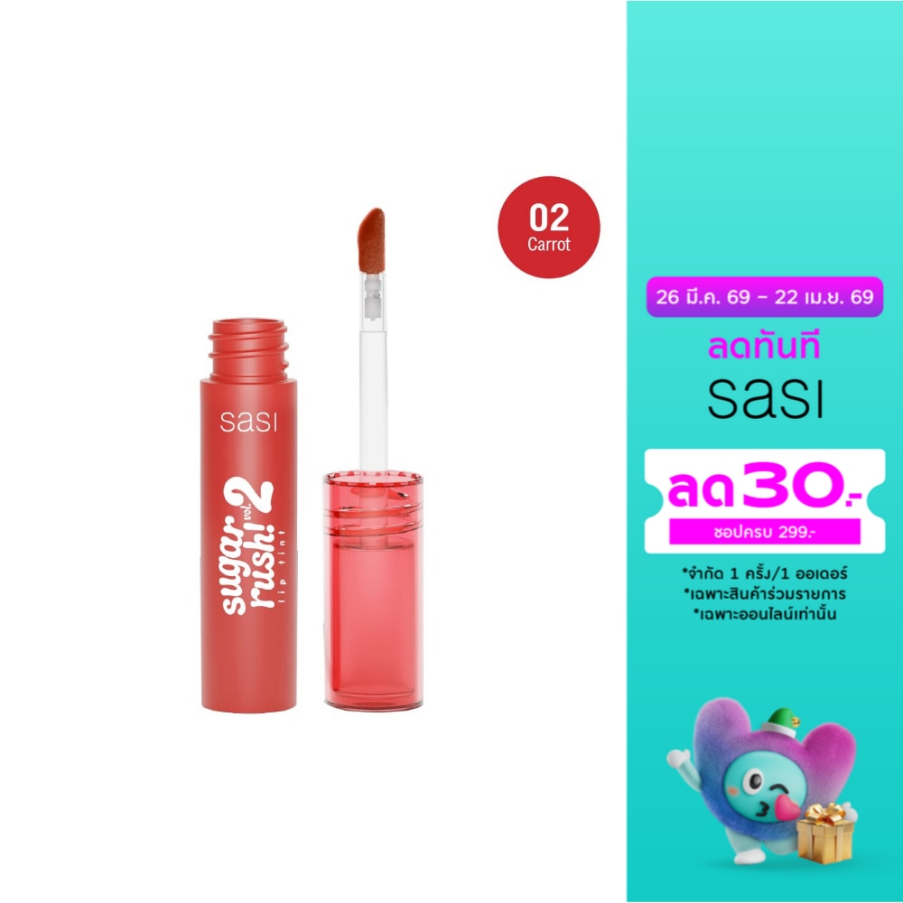 sasi Sugar Rush Lip Tint Vol2 New and upgraded Tinted lip in a water-based formula.Sugar Rush Lip Tint Vol.2 now with more vibrant colors pigmented added shine and extended to 12 hour long lasting. This allows you to fully enjoy your colorful day with 12 stunning shades. The lightweight texture ensures easy blending allowing you to achieve comfortable pigmented lips effortlessly.Infused with 5 types of Hyaluronic Acid Red Fruit Complex Vitamin E and Aloe Vera to keep your lips moisturized and soft providing a perfect maxi lip.Have fun experimenting with all your creative styles