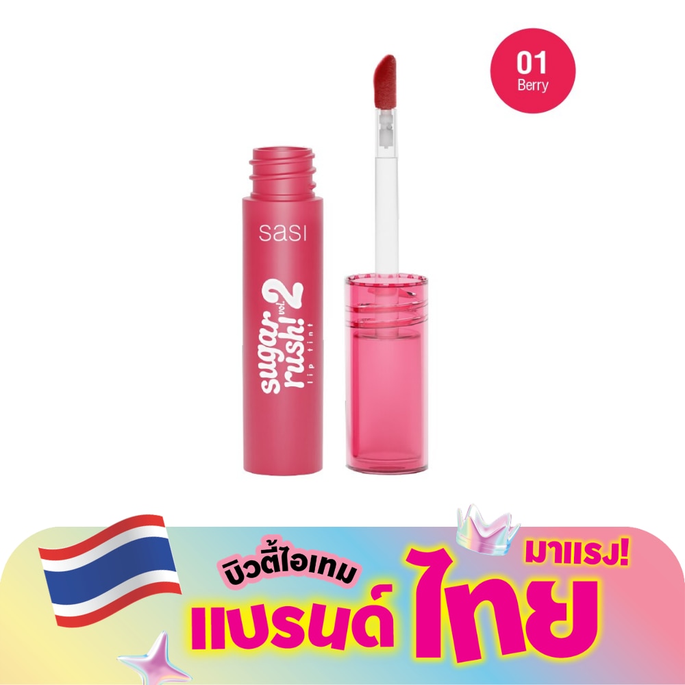 sasi Sugar Rush Lip Tint Vol2 New and upgraded Tinted lip in a water-based formula.Sugar Rush Lip Tint Vol.2 now with more vibrant colors pigmented added shine and extended to 12 hour long lasting. This allows you to fully enjoy your colorful day with 12 stunning shades. The lightweight texture ensures easy blending allowing you to achieve comfortable pigmented lips effortlessly.Infused with 5 types of Hyaluronic Acid Red Fruit Complex Vitamin E and Aloe Vera to keep your lips moisturized and soft providing a perfect maxi lip.Have fun experimenting with all your creative styles