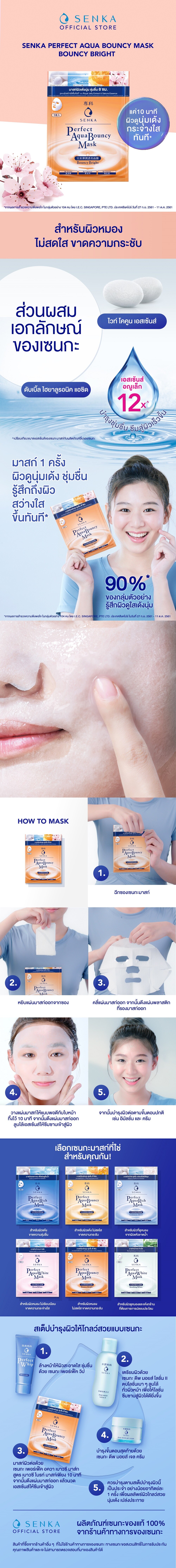Facial Mask Sheet that help instantly bouncy and glowing bright skin after 1 use*. It contains Royal Jelly which delivers extra nourishment to the skin keeping it plumped & bouncy, and Sakura Essence which helps brightens skin for an extra glow.