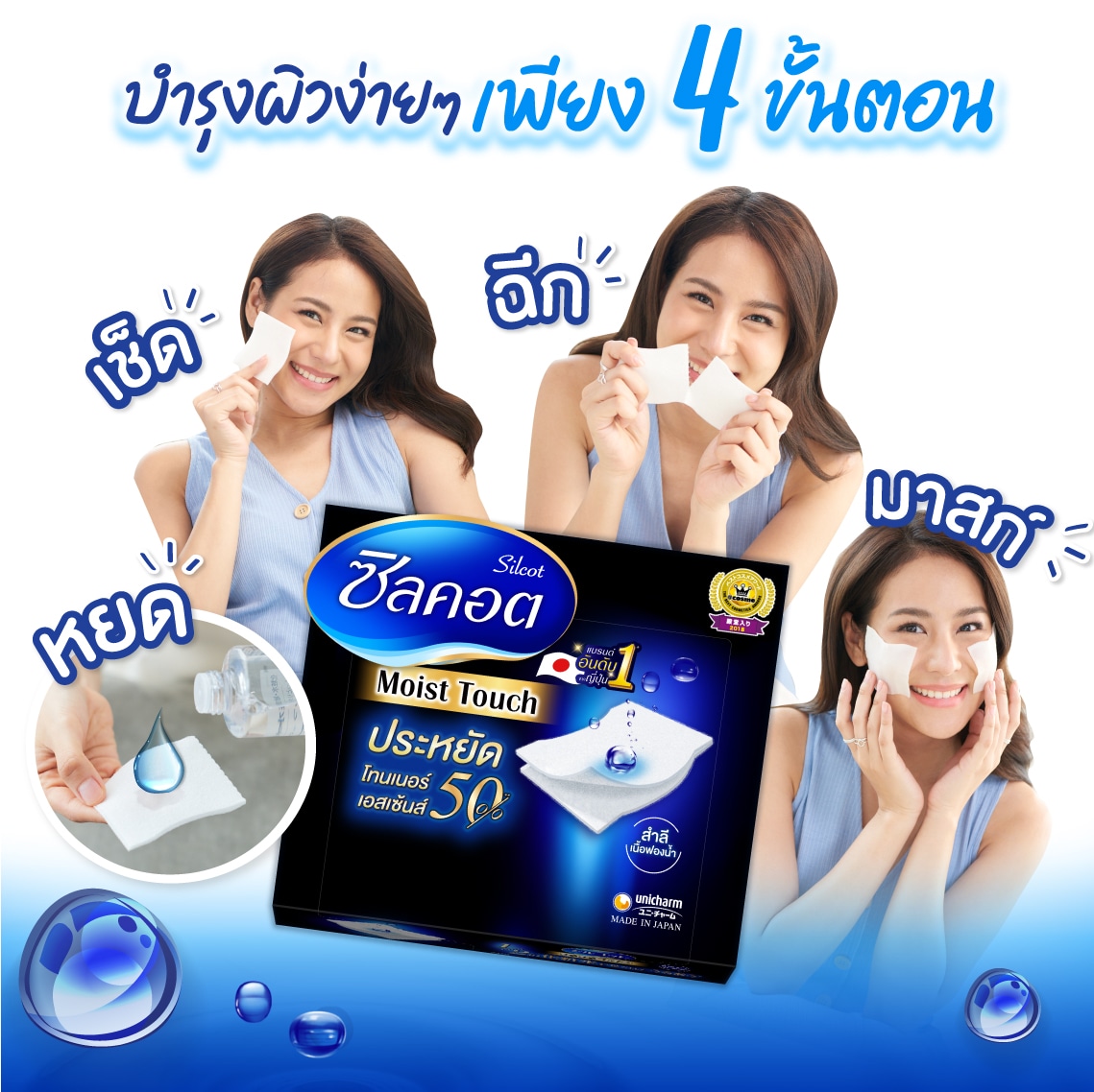 Silcot Moist Touch cotton pad Only one innovation of cotton pad that is sponge type and soft, can spreading toner and essence and help toner and essence penetrate back to skin more. Embrace toner more than normal cotton** even using only half of toner but can fully absorbed into skin. Save toner essence up to 50%. Fully penetrate to skin and make your skin moisturizing longer than before. Technique for using cotton pad to get the most efficiency. - Drop toner/essence on cotton pad 2-3 drops. - Gently pad all over your face. For helping skincare fully penetrate to skin. - Split into 2 sheets and can mask under eyes, forehead and chin.
