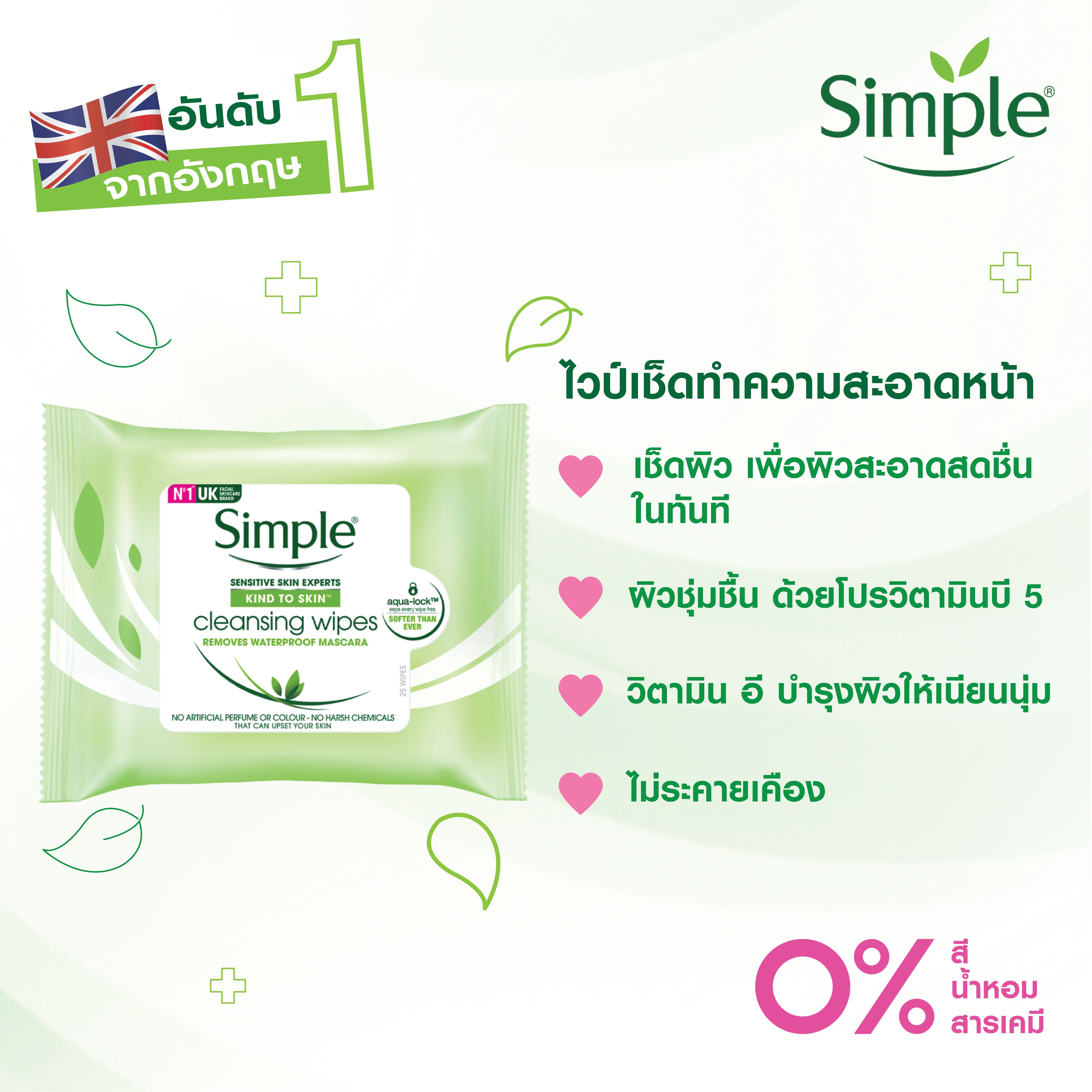Simple Cleansing Facial Wipes are made of our softest fibers yet and are better at removing make up and impurities even waterproof mascara. With Aqua-Lock technology, our wipes stay effective and fresh, even the last one! Kind to skin, no artificial perfume or color, no harsh chemicals