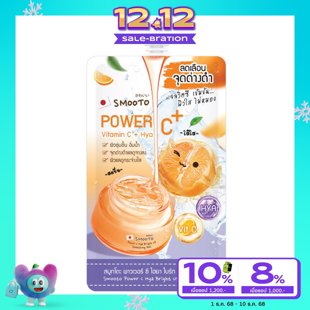 Smooto Power C Hya Bright Up Soothing Gel 30g. Concentrated vitamin C gel Help take care of the problem of dark skin accumulation. With a combination of hyaluronic acid, collagen and vitamin E to help restore dry skin to soften, moisturize the skin, make the skin look radiant. Helps acne scars Dark spots look faded. The skin color is even and natural. Healthy looking skin. Apply on face and body on a daily basis, morning and evening, or use as often as needed. Warning: 1. Cosmetics cannot change the natural skin color of an individual. 2. The results vary depending on the skin condition of each person.