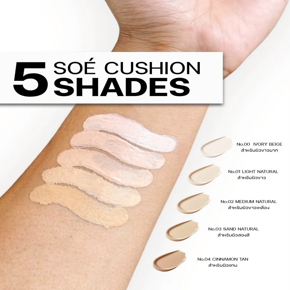 SOE Radiant White Smooth amp; Glow Cushion Refill SPF 42+++, 15grams. This lightweight, finely textured cushion provides coverage, controls oil, and is waterproof and sweatproof. It evens skin tone and protects against sun damage with SPF 42 PA+++. The lightweight formula feels comfortable on the skin, offering natural coverage in a shade suitable for Asian skin tones. It's long-lasting, sweat-resistant, and contains imported extracts to nourish and protect skin from UVA/UVB rays with SPF 42 PA+++. This product contains 7 types of extracts Nano White helps brighten and even out skin tone Alpha Arbutin helps reduce facial blemishes Vitamin E strengthens the skin and reduces inflammation Jojoba oil is gentle and suitable for sensitive skin 39 types of Amino Acids help retain moisture without increasing oiliness Jeju Sea Water provides deep hydration to help the skin fight against the formation of wrinkles and Aloe Vera Extract reduces irritation and increases skin hydration.