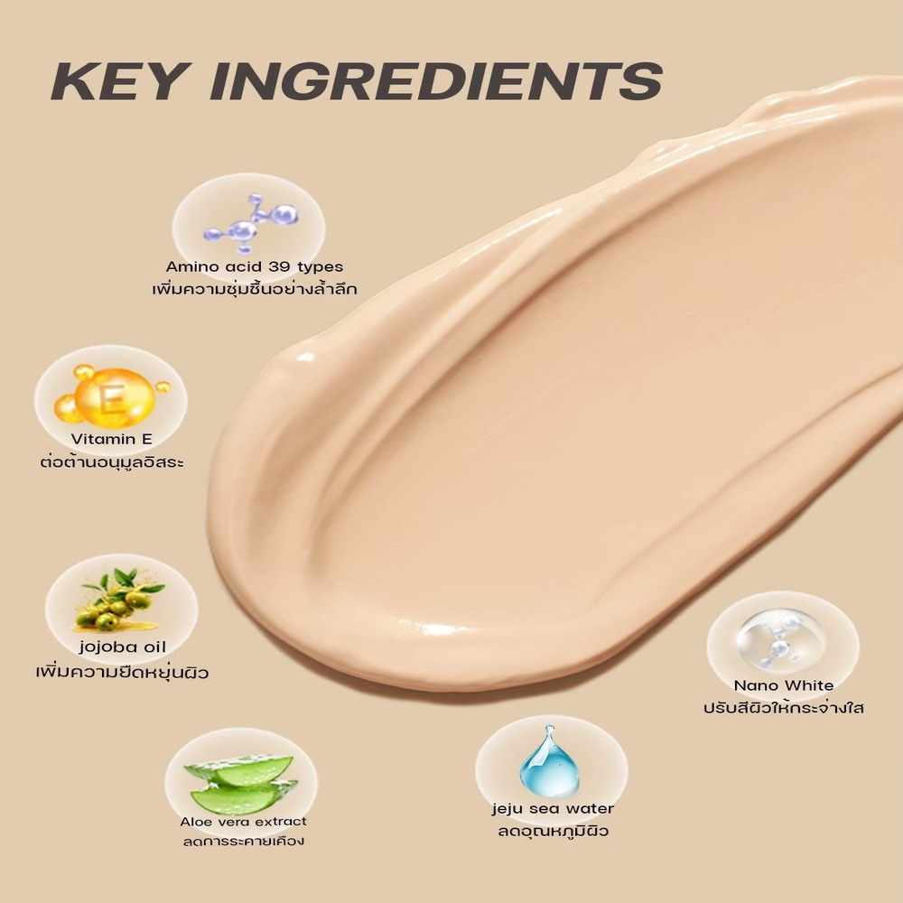 Deionized Water, Phenyl Trimethicone, Titanium Dioxide, Mineral Oil, Diglycerin, Cyclopentasiloxane, Dimethicone, Synthetic Fluorphlogopite, Propylene Glycol, Peg-10 Dimethicone, Lauryl Peg-10 Tris(Trimethylsiloxy)Silylethyl Dimethicone, Talc, Phenoxyethanol, Boron Nitride, Trimethylsiloxysilicate, Polymethyl Methacrylate, Triethoxycaprylylsilane, Polyglyceryl-20 Octadecabehenate/Hydroxystearate, Disteardimonium Hectorite, Silica, Butylene Glycol, Aluminum Hydroxide, Disodium Edta, Acrylates/C10-30 Alkyl Acrylate Crosspolymer, Triethanolamine, Aloe Barbadensis Leaf Juice Powder, Xanthan Gum, 1,2-Hexanediol, Acacia Concinna Fruit Extract, Betaine, Sodium Hyaluronate, Hydrolyzed Hyaluronic Acid, Sodium Acetylated Hyaluronate, Sea Water, Ethanol, Lecithin, Arbutin, Ethylhexylglycerin, Tocopheryl Acetate, Glutathione, Linolenic Acid, Linoleic Acid, Magnesium Pca, Sodium Lactate, Ascorbyl Palmitate, Copper Tripeptide-1, Serine, Sucrose, Urea, Glycine, Calcium Chloride, Potassium Hydroxide, Ornithine, Sea Salt, Alanine, Magnesium Chloride, Threonine, Histidine, Aspartic Acid, Valine, Proline, Dipotassium Phosphate, Lysine, Leucine, Tyrosine, Isoleucine, Magnesium Citrate, Glucosamine Hcl, Phenylalan