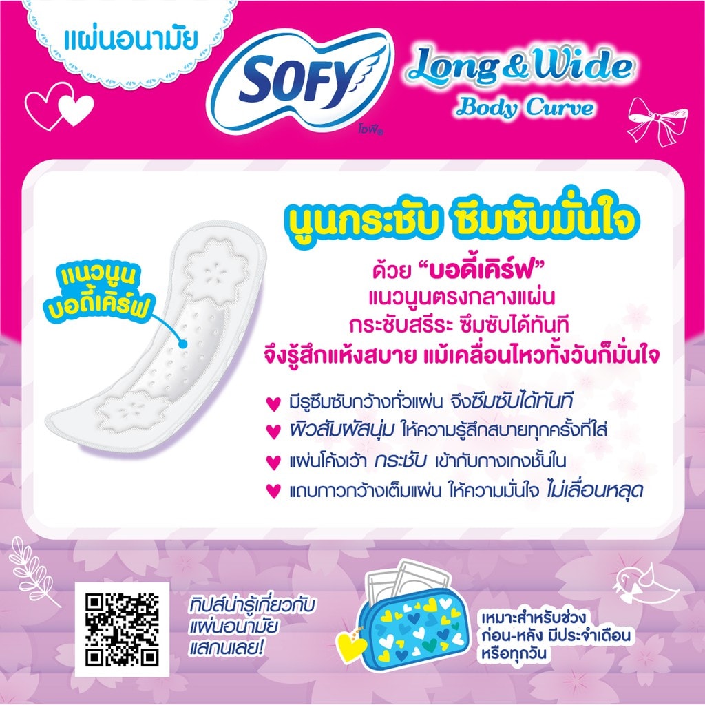 Sofy Pantyliner long&wide Reguler Body Curve Scented,fit and confident absorb,gentle to skin with absorbment hole,immediately absorb even movement all day long