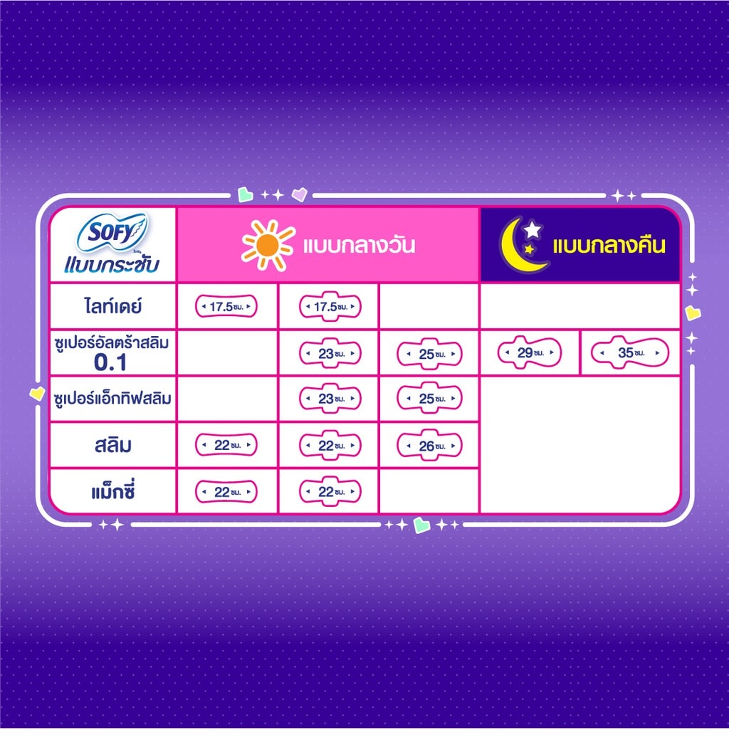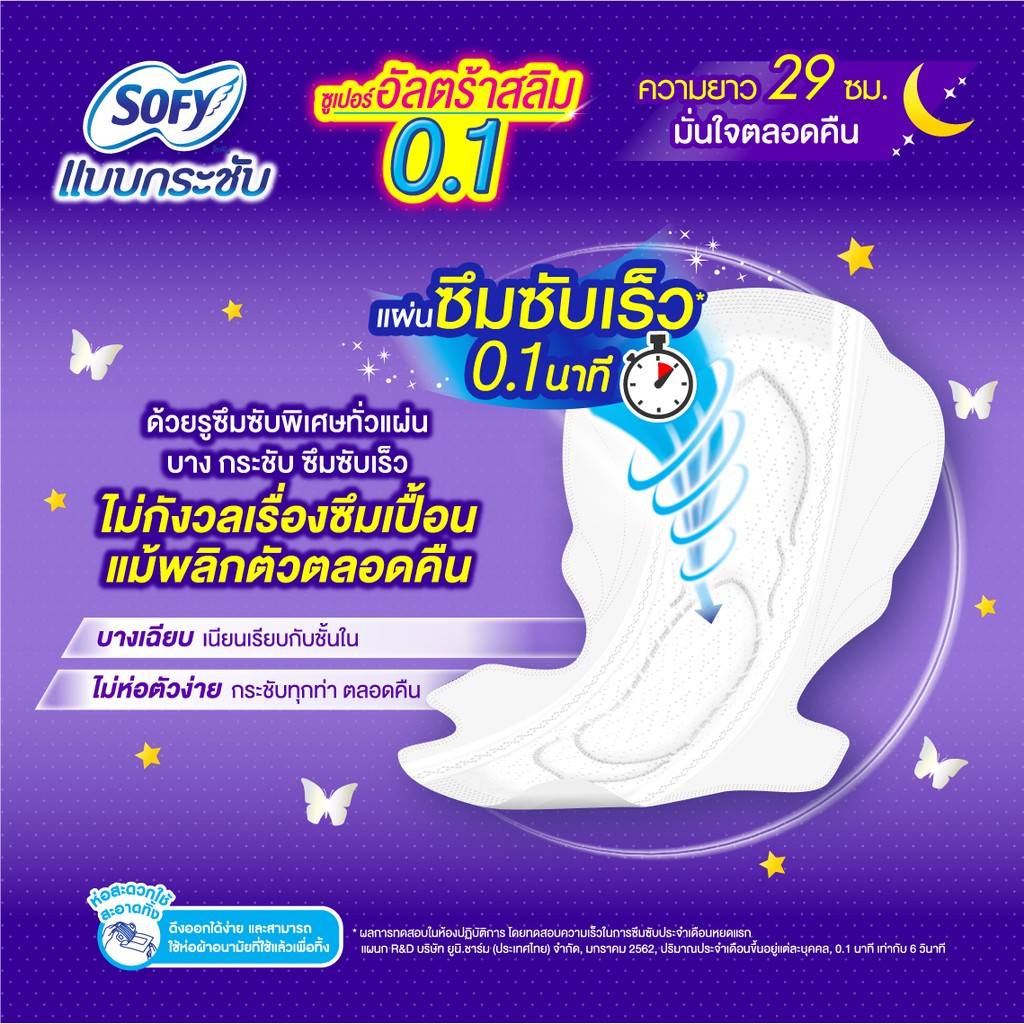 Sofy Body Fit Super Ultra Slim0.1 Night Wing 29 cm. night napkin, No deform No leakage with “Fast Absorbent sheet 0.1 min” Slim Fit, Fast absorb