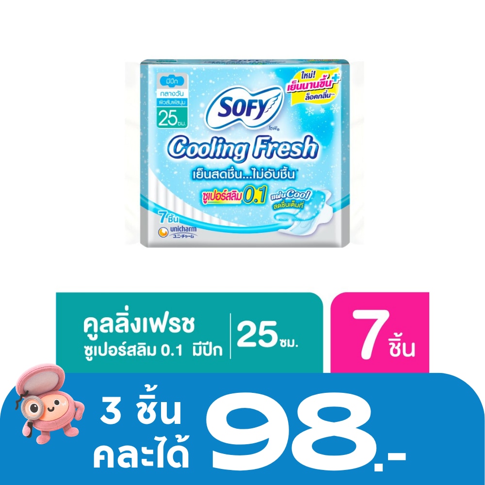 SOFY Cooling Fresh is cool napkin. With new technology, Cool Pad, gives cool feeling since wearing, reduces stuffiness which causes of odor. No matter how long, you will feel comfortable to body like changing new pad all day.