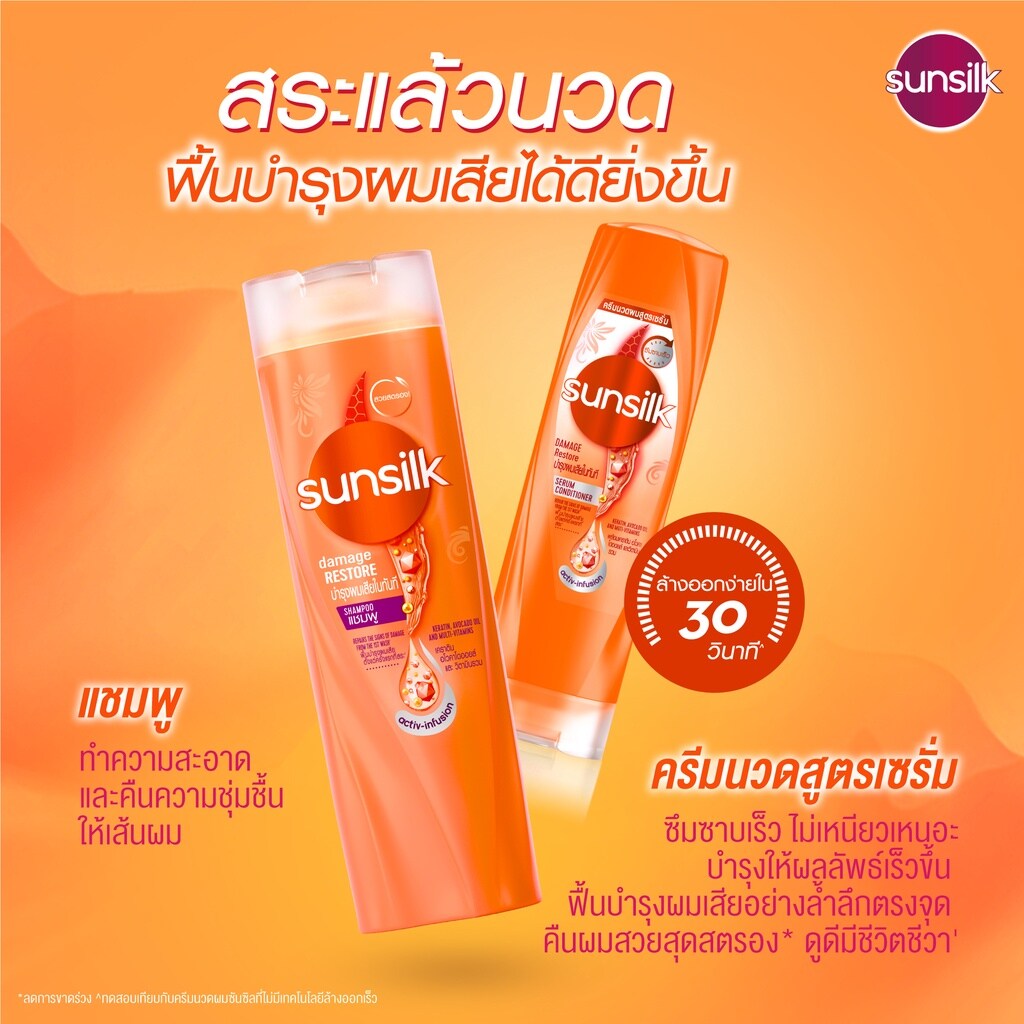 Ready Pour into your hand, apply evenly over your hair, massage gently, and then rinse thoroughly. Why not combine it with our Sunsilk Damage Restore Serum Conditioner for even more incredible hair.