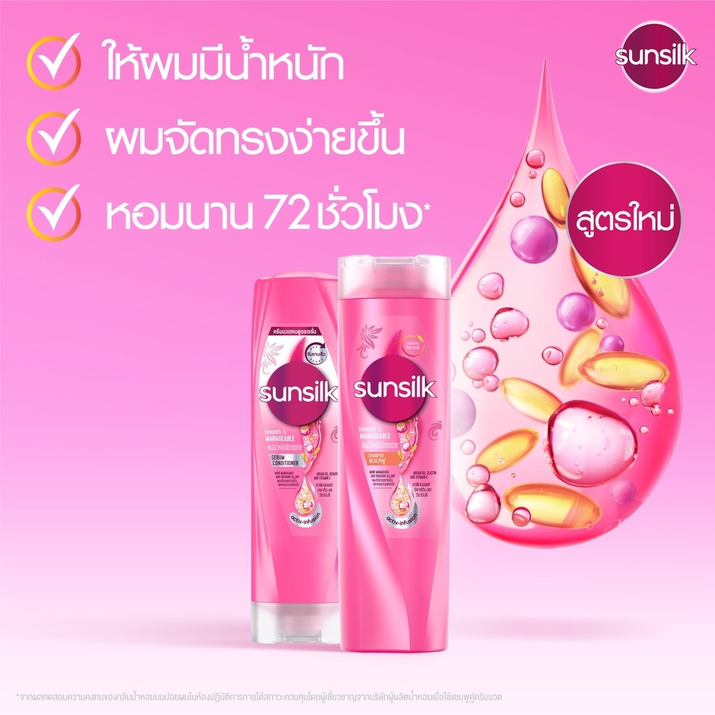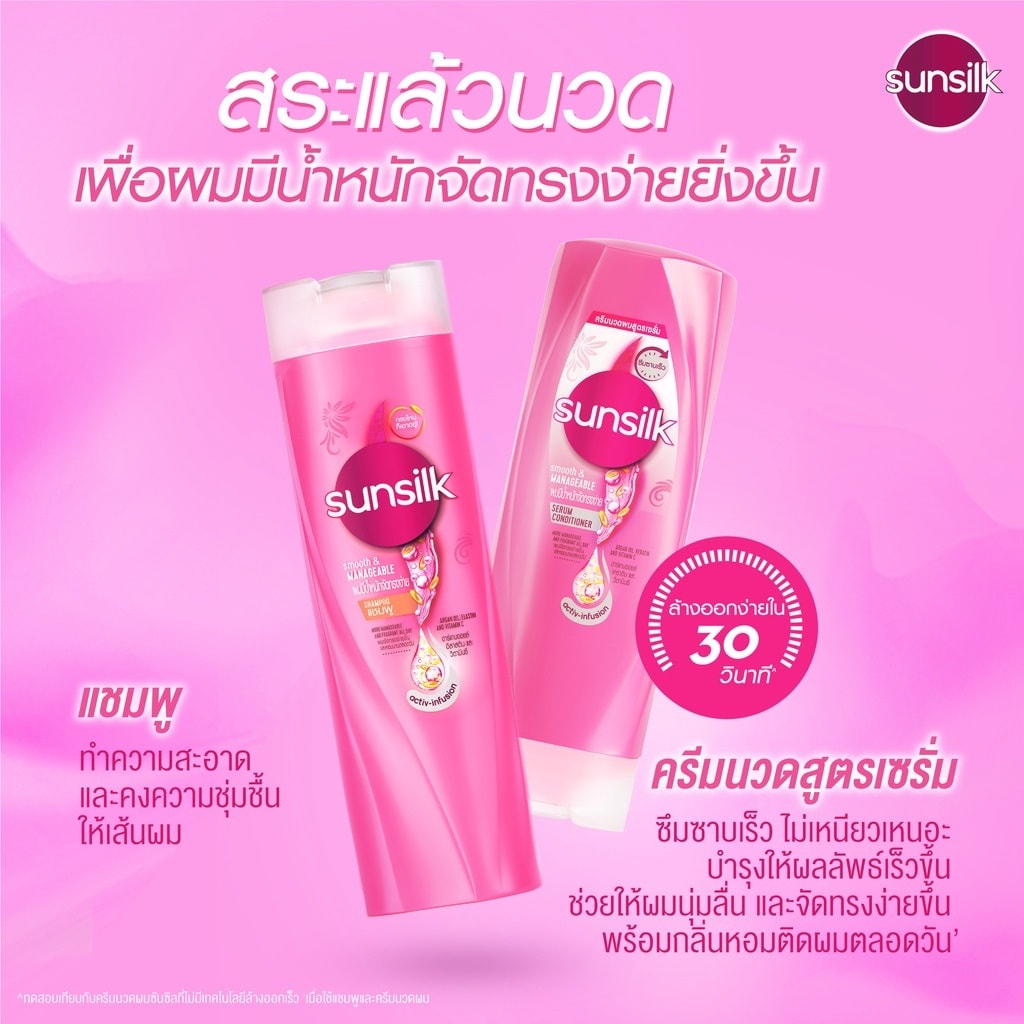 Ready Pour into your hand, apply evenly over your hair, massage gently, and then rinse thoroughly. Why not combine it with our Sunsilk Smooth Manageable Serum Conditioner for even more incredible hair.