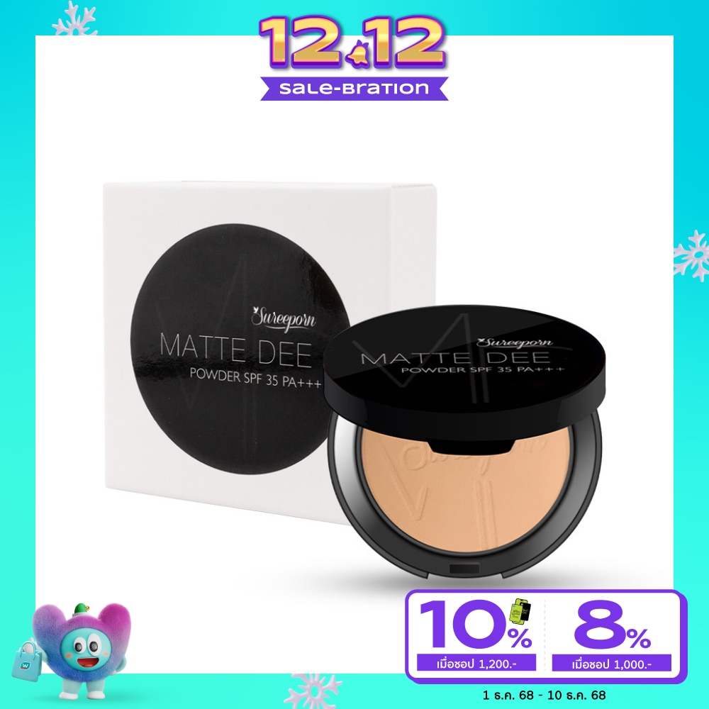 Sureeporn Matte D Powder SPF35 PA+++ is a pressed powder foundation that creates beautiful skin and provides a natural matte finish. Its smooth and soft texture is easy to blend and perfectly conceals blemishes and wrinkles. Its special particles absorb excess oil, leaving your skin feeling comfortable, radiant, and healthy-looking. It also nourishes your skin, leaving it soft, smooth, and even more touchable with Vitamin C derivatives. It also contains sunscreen extracts that protect your skin from the sun with SPF35 PA+++. This lightweight powder is lightweight and doesn't feel heavy on your face. It helps blur pores, acne scars, freckles, and dark spots, and brightens your skin for a naturally radiant look. It controls oiliness, doesn't clog pores, and is waterproof.