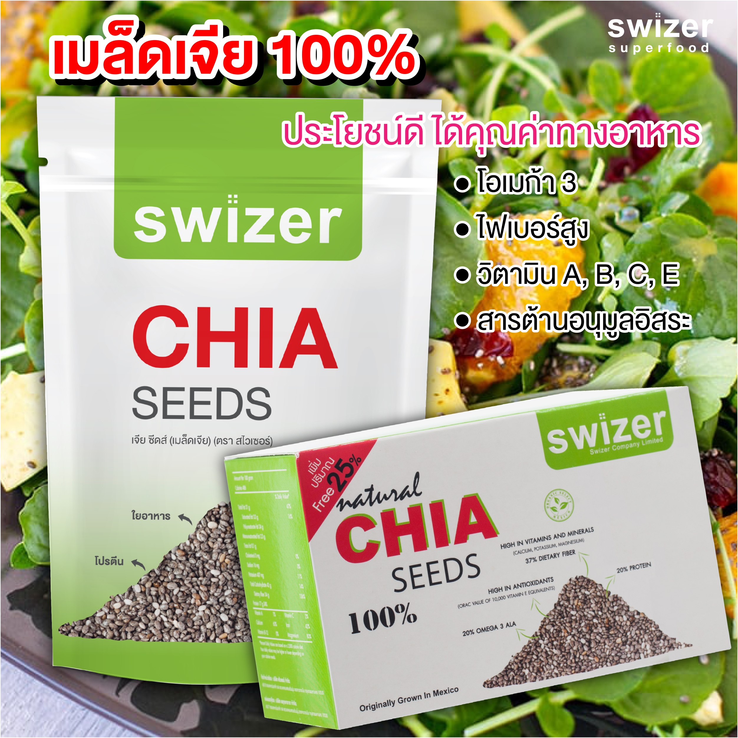 Swizer Chia seeds Natural Organic are among the healthiest food as “Superfood” they are loaded with nutrients that have important benefits for your health, body, skin and brain. Chia Seeds have exploded in popularity and are now consumed by health conscious people all over the world.
