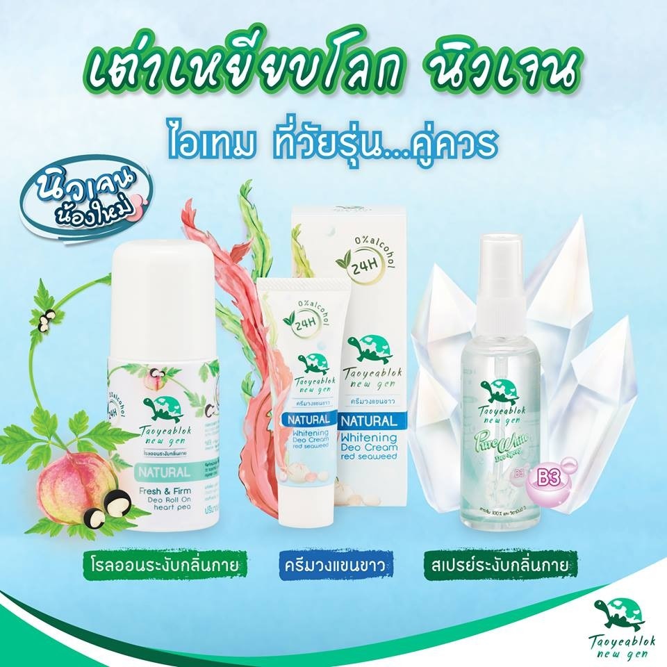 TAOYEABLOK is guaranteed by users of all genders and ages to be the No. 1 selling deodorant brand in Thailand. Made from natural raw materials. It does not contain alcohol, a substance commonly found in deodorants. TAOYEABLOK FRESH AND FIRM DEO ROLL ON, Helps to deodorize your body and sweat. With Heart Pea extracts that are rich in skin food. Help tighten pores after armpit hair removal. Ready to nourish the skin to look smooth. naturally radiant Doesn't make armpits dark, Not stain on clothes. Allows you to do activities during the day with ease Ready to dry, comfortable, confident 24 hours.