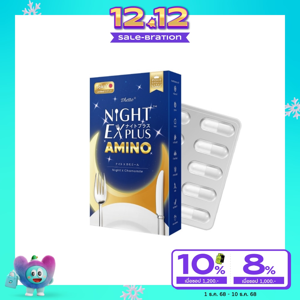 Tokuyo Diretto Night X Plus Amino 10 capsules, new formula! Added amino, smoother excretion than before, take just one pill and you're done, sleep soundly, stimulate excretion, nourish the digestive system and intestines, help the body absorb nutrients better, smoother excretion, on time, no cramps, increase the energy metabolism rate, healthy body, feel it from the beginning with enzymes extracted from vegetables and fruits, balance hormones, accelerate metabolism, amino that stimulates protein production, nourishes the digestive system and intestines, and chamomile contains apigenin, helps the brain relax, resulting in better sleep because lack of sleep is more serious than you think. Wouldn't it be better to have a good helper to help with sleep and metabolism for the body?